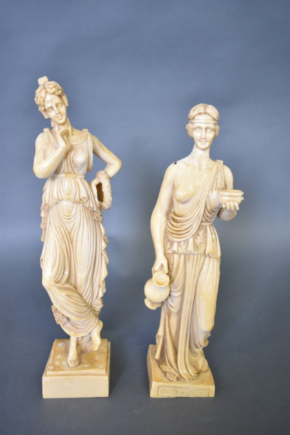 15138. Figuriner 2 st, kvinnor, konstmassa, högsta höjd 43 cm