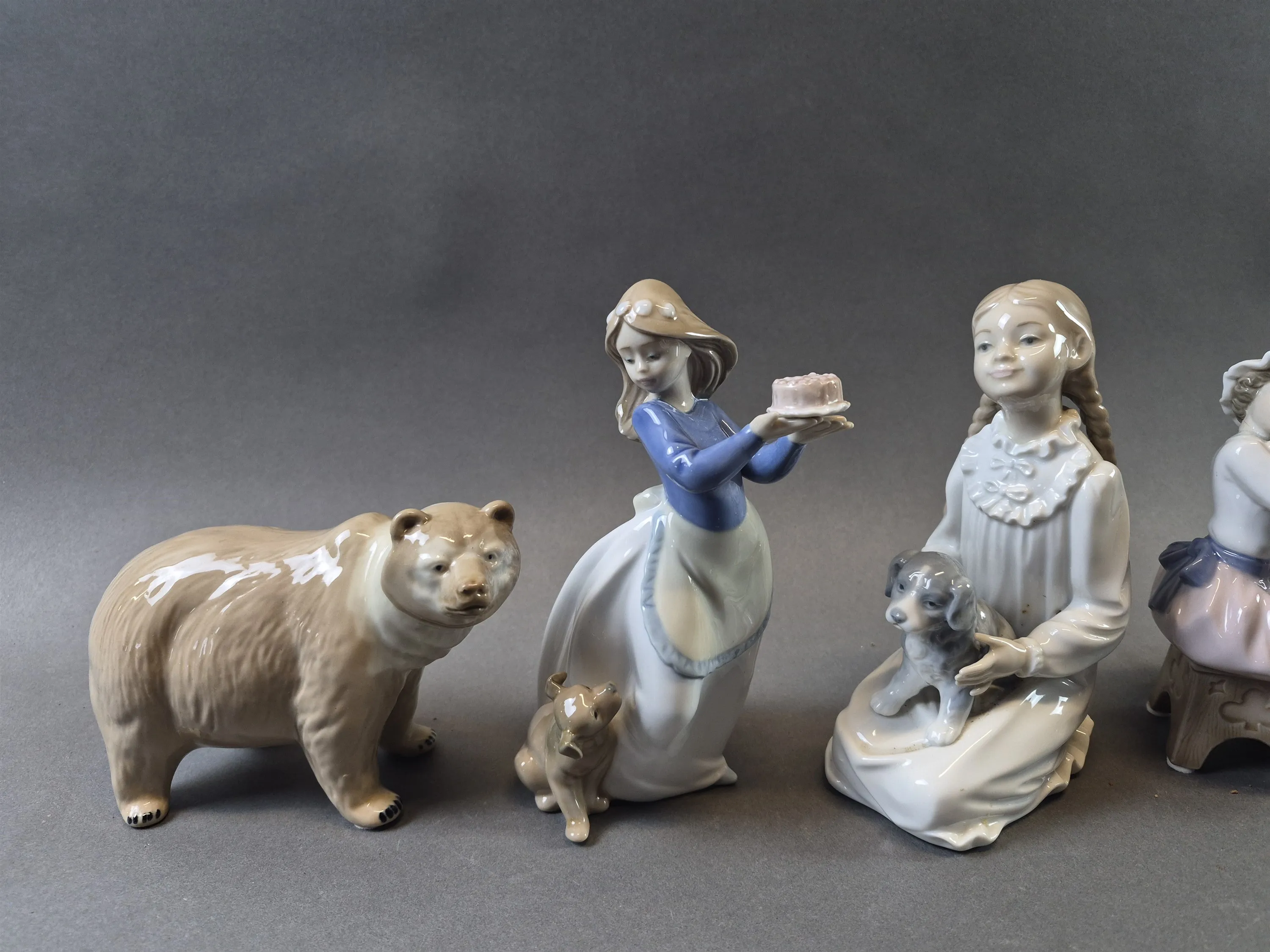 21023. Figuriner bla Lladro och NAO, porslin, högsta höjd 19 cm