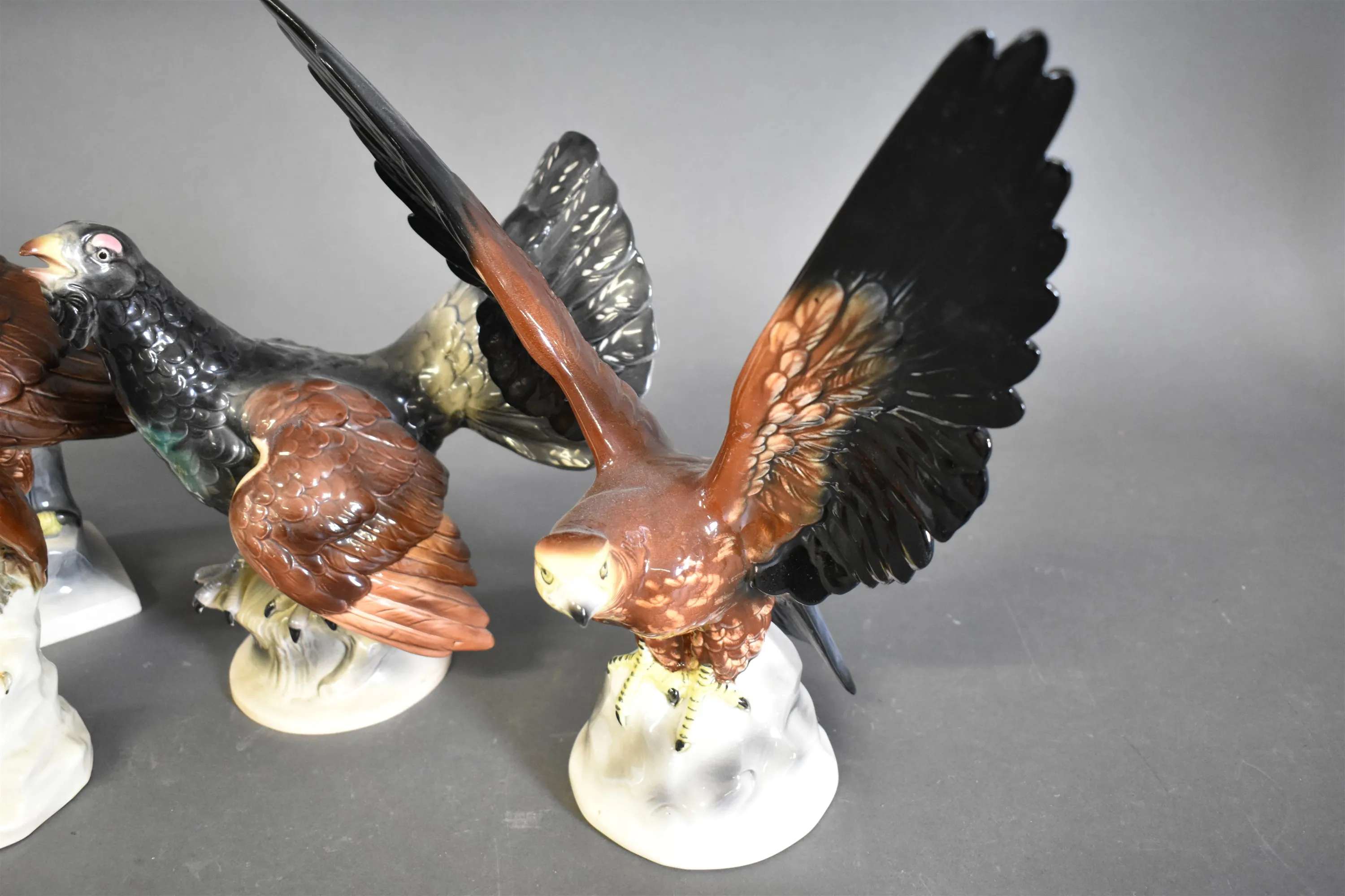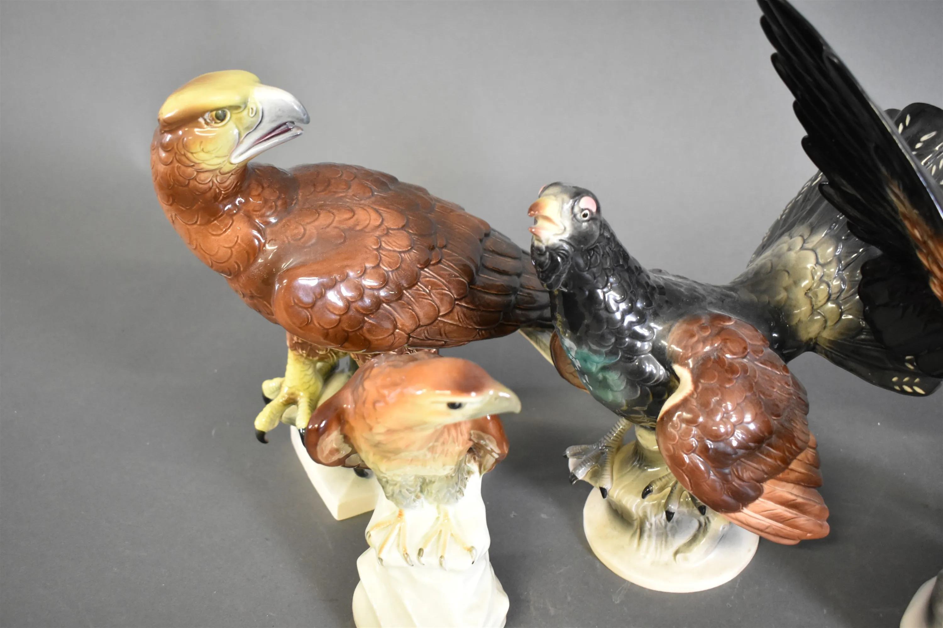 16514. Figuriner fåglar 4 st, porslin, lagad vinge på en fågel, högsta höjd 36 cm