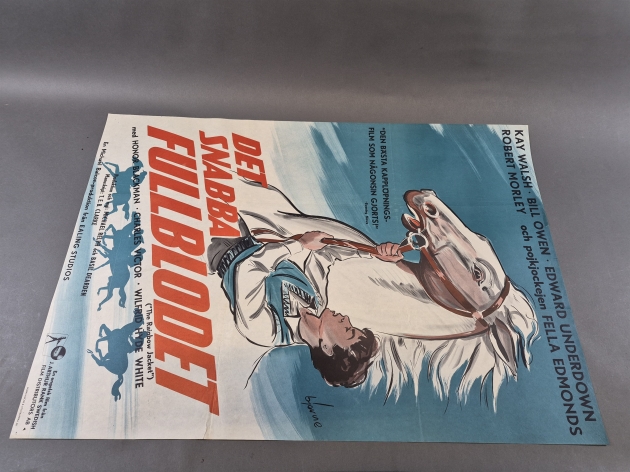 20950. Filmposter "Det snabba fullblodet", veck och någon skada finns, mått 100x70 cm