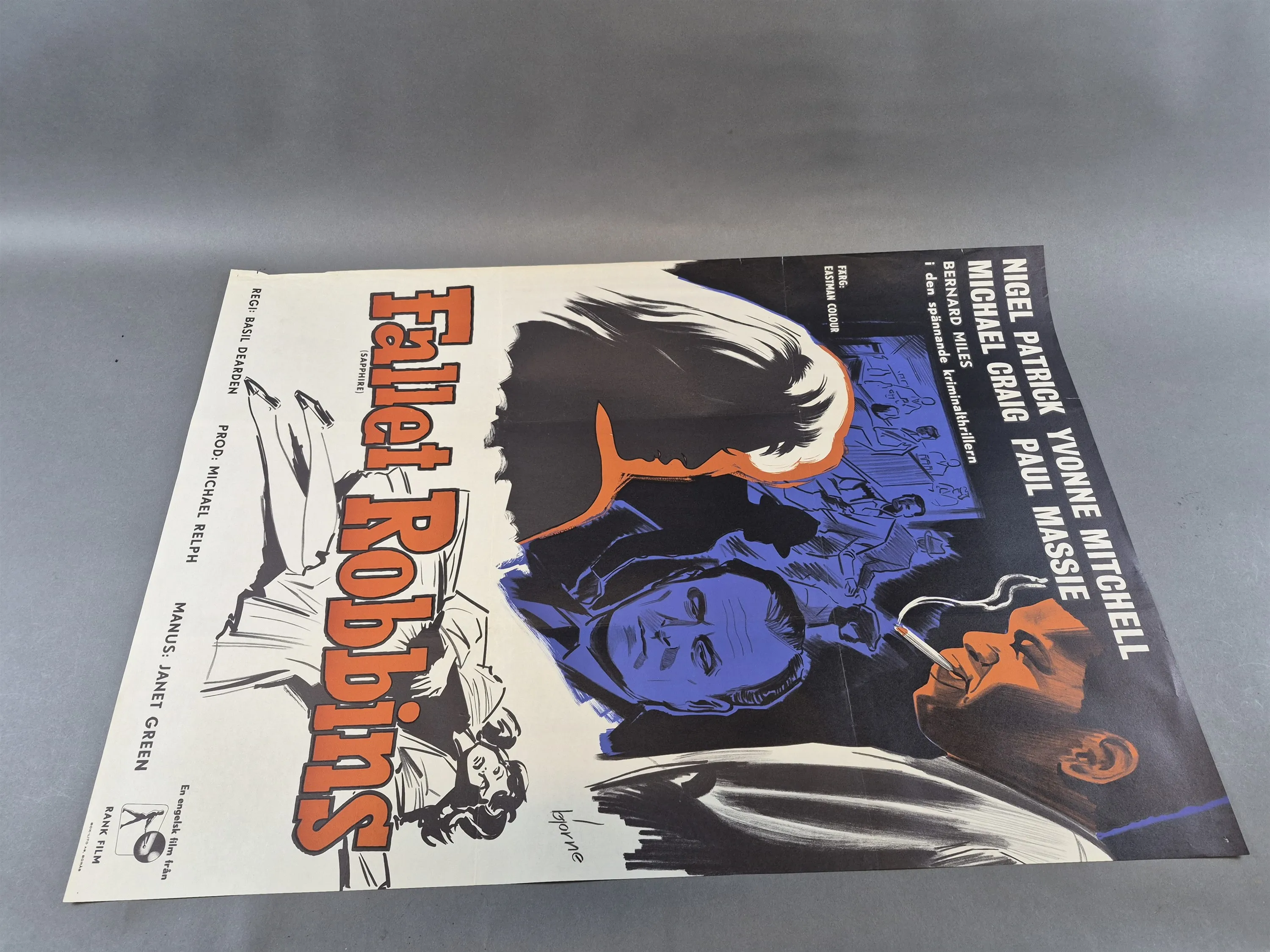20948. Filmposter "Fallet Robbins", veck och någon skada finns, mått 100x70 cm