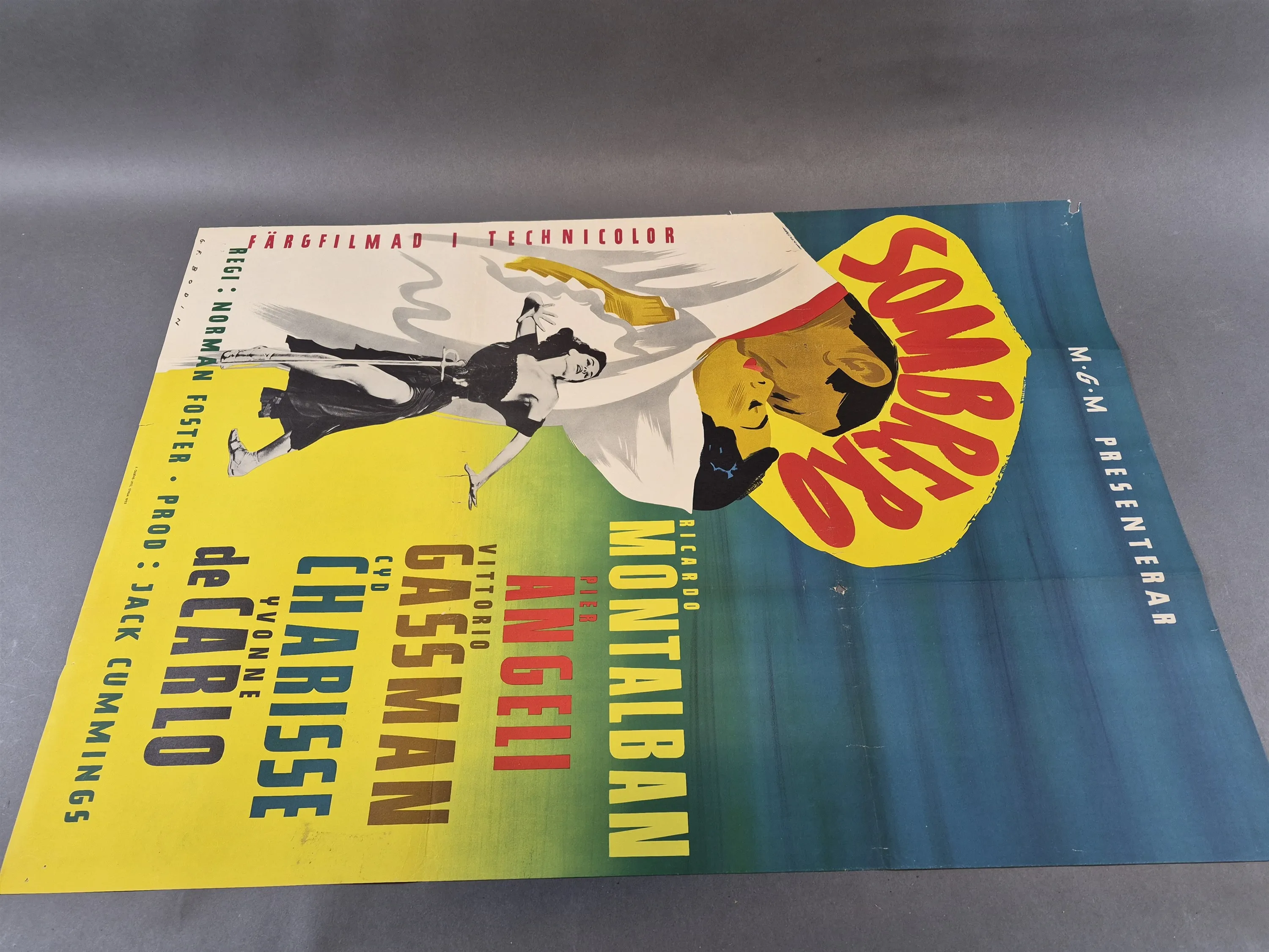 20903. Filmposter "Sombrero" 1953, veck och skador finns, mått 100x70 cm