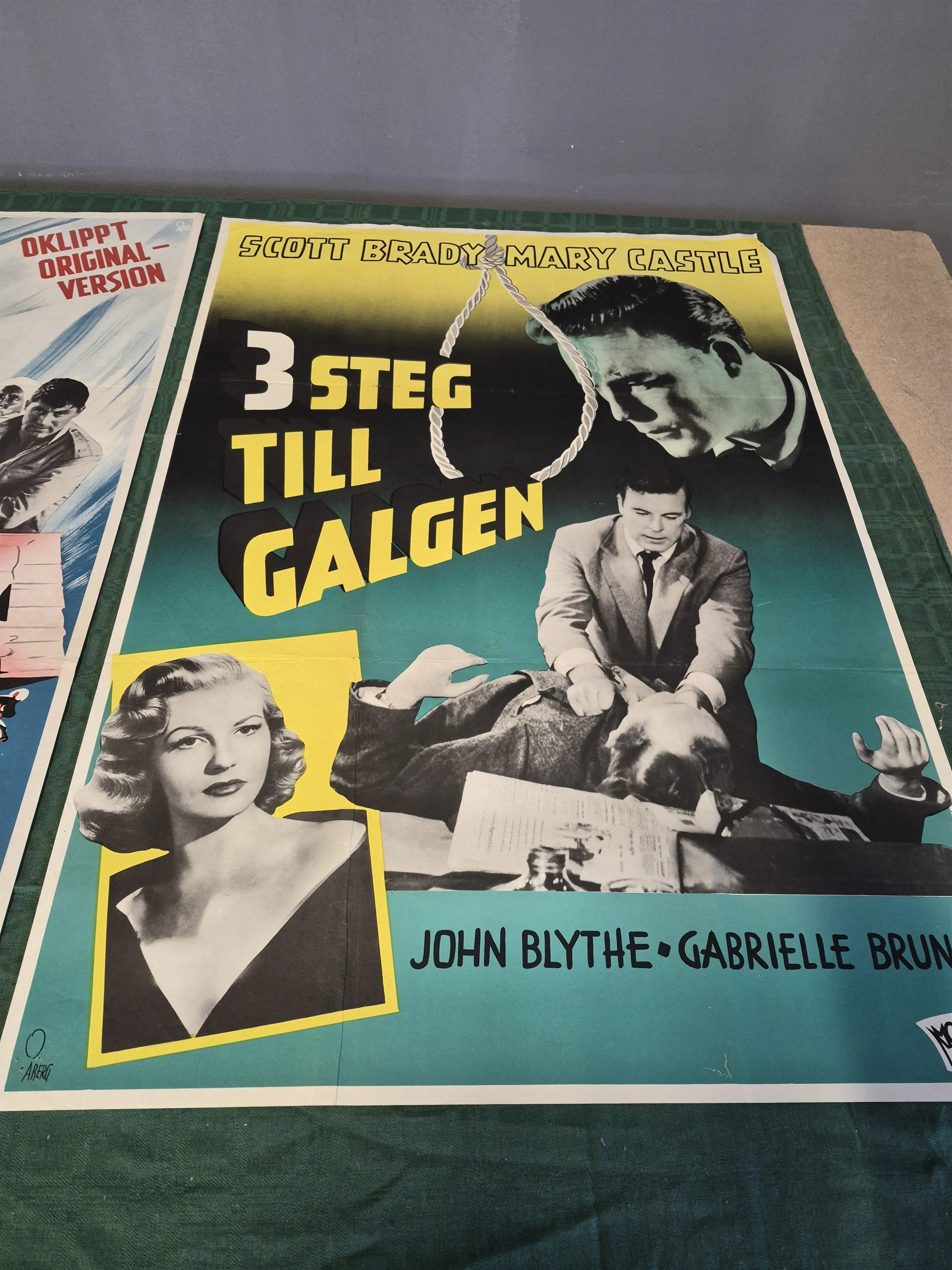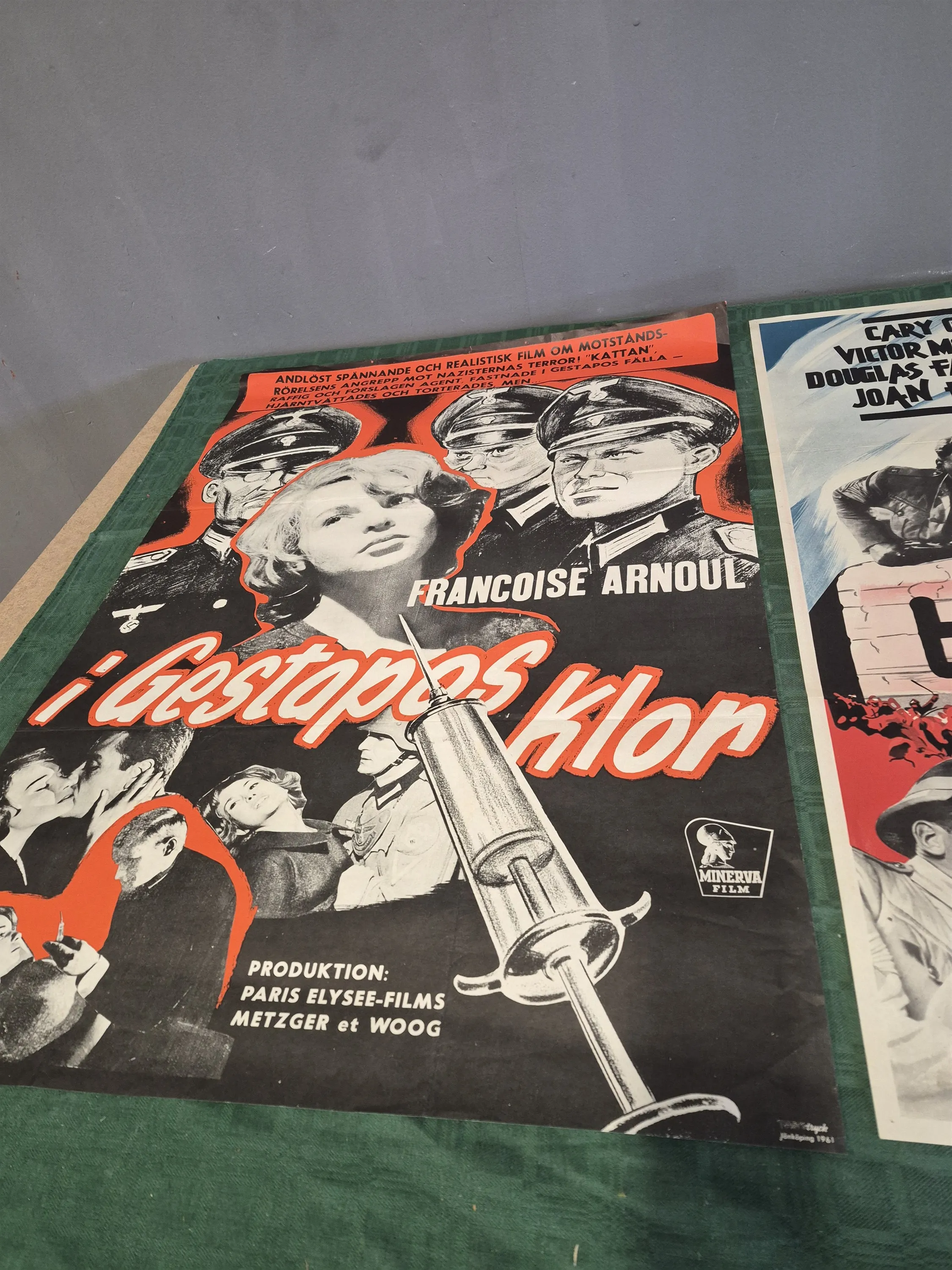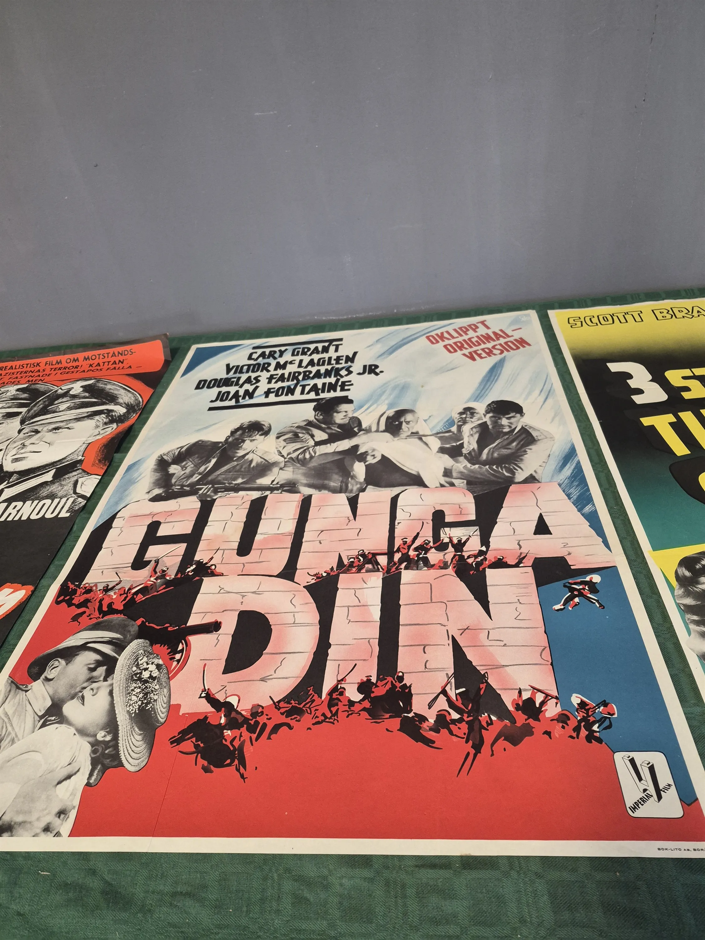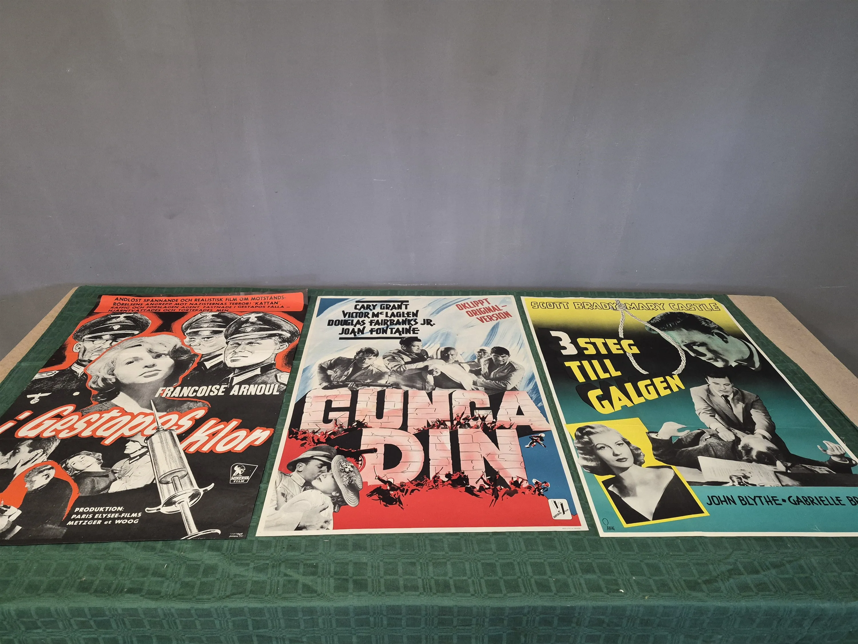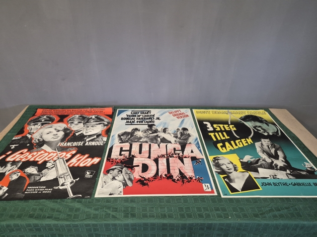 20329. Filmposters 3 st; I gestapos klor, Gunga din och tre steg till galgen, veck och smärre defekter finns, mått 100x70 cm