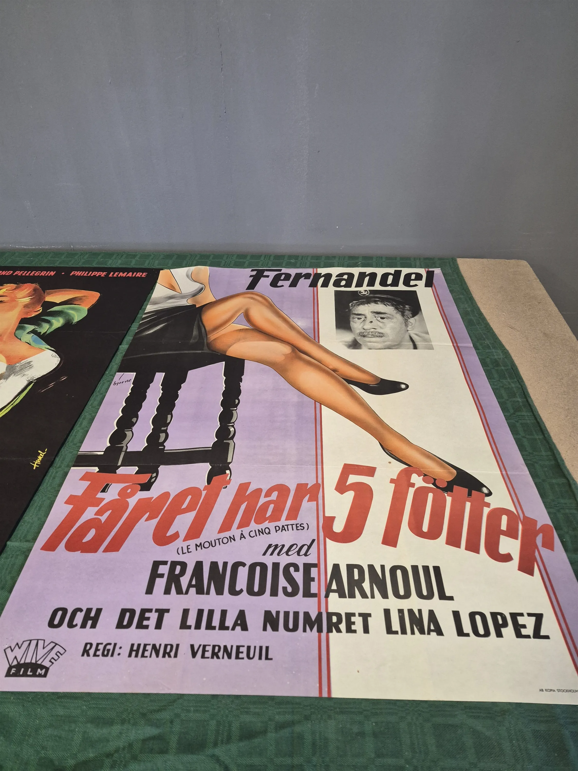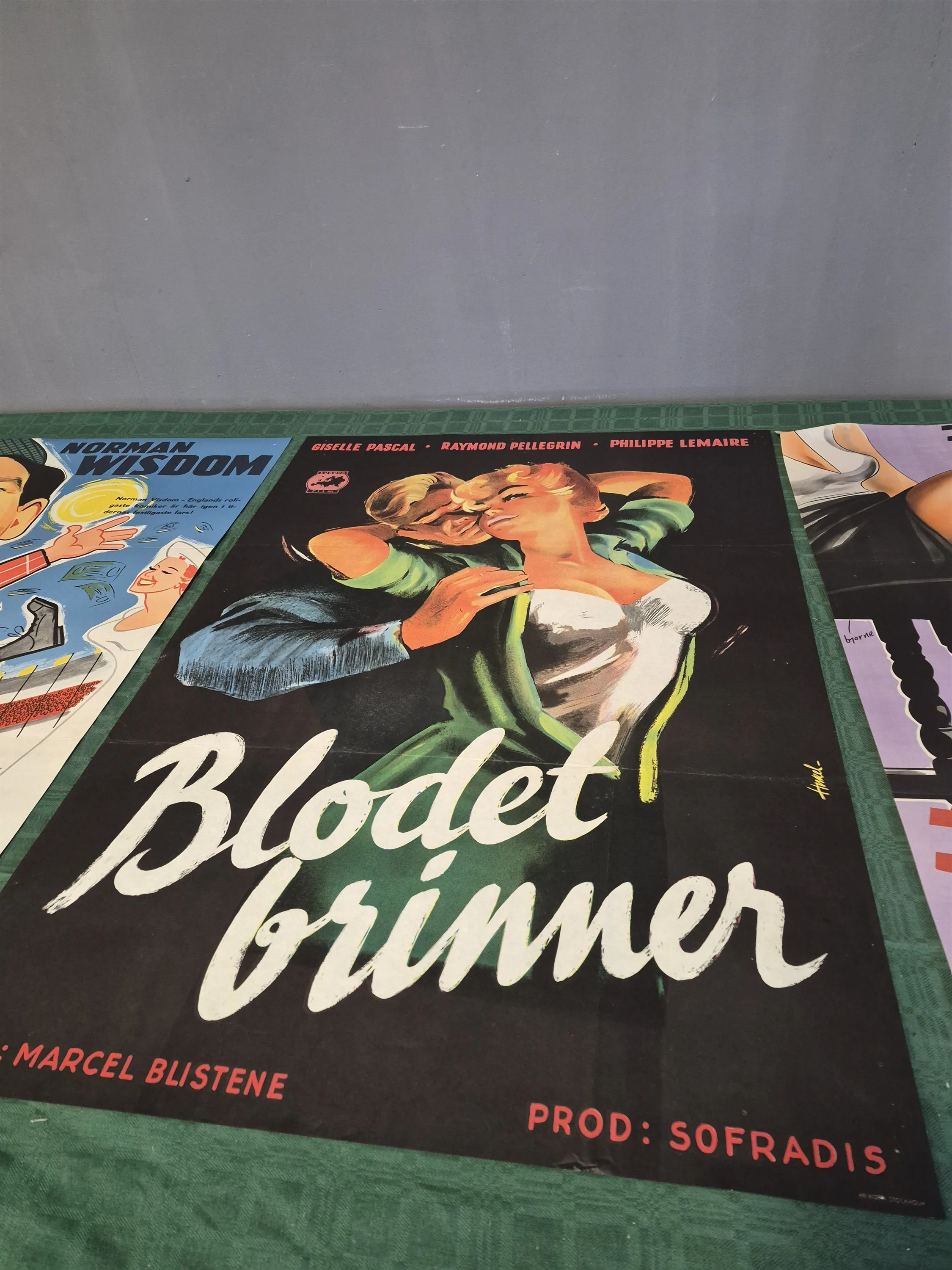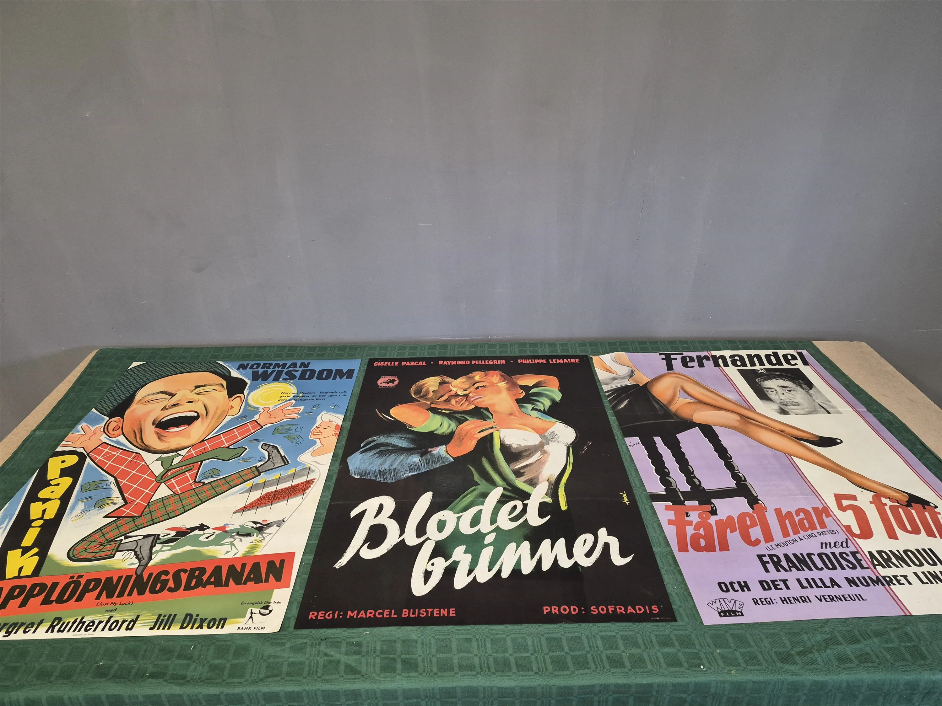 20330. Filmposters 3 st; Panik på kapplöpningsbanan, Blodet brinner och Fåret har fem fötter, veck och smärre defekter finns, mått 100x70 cm