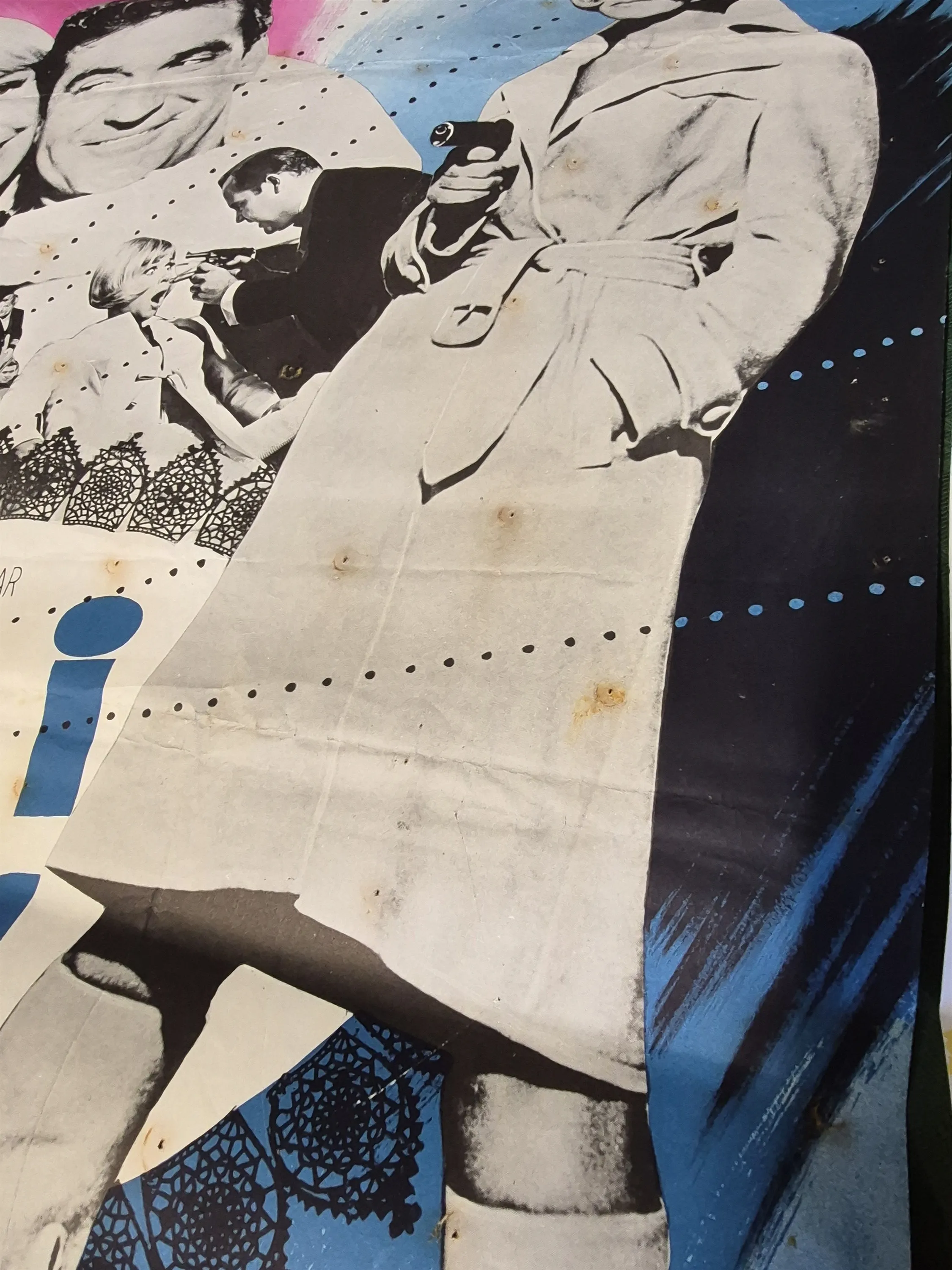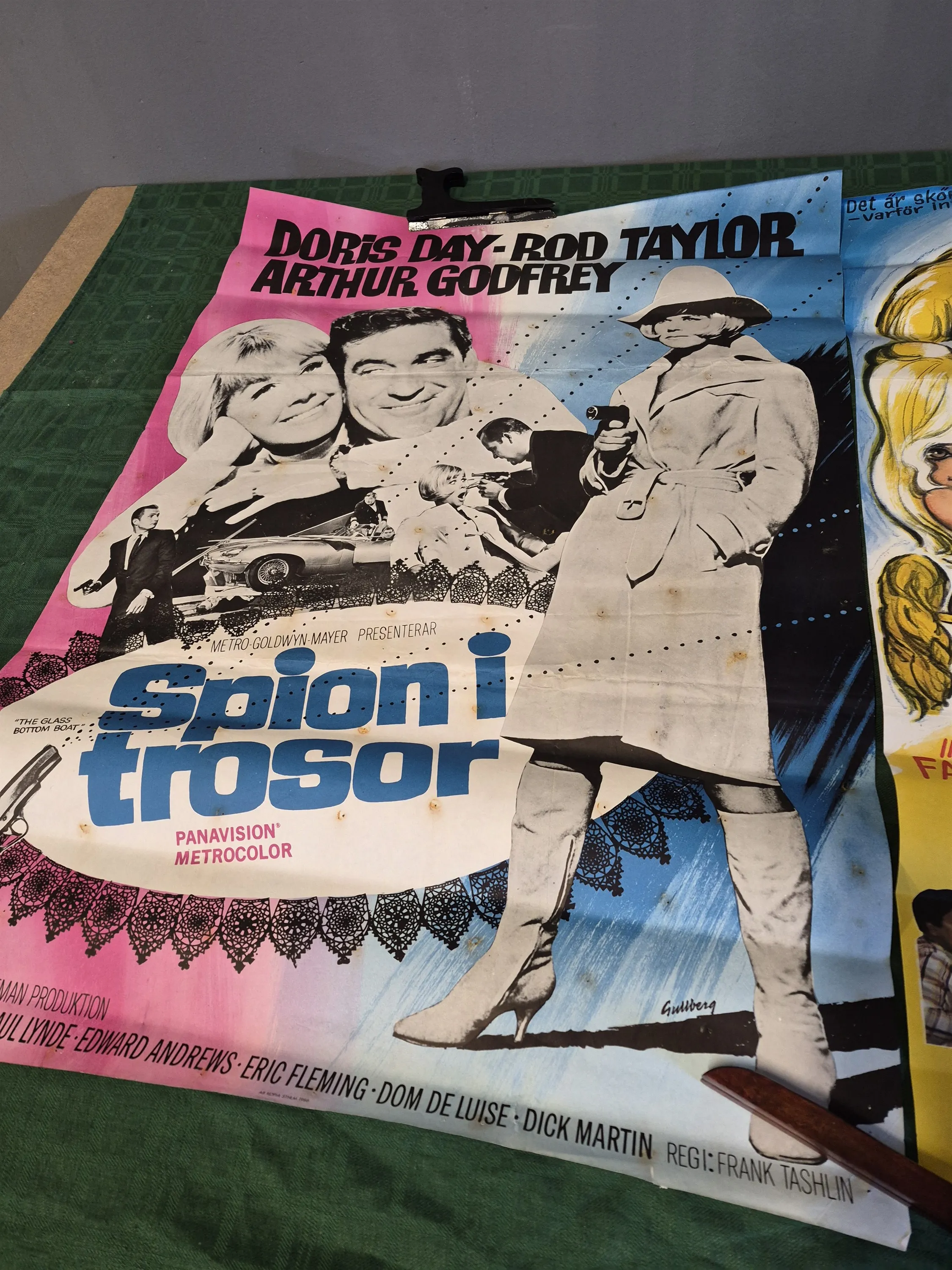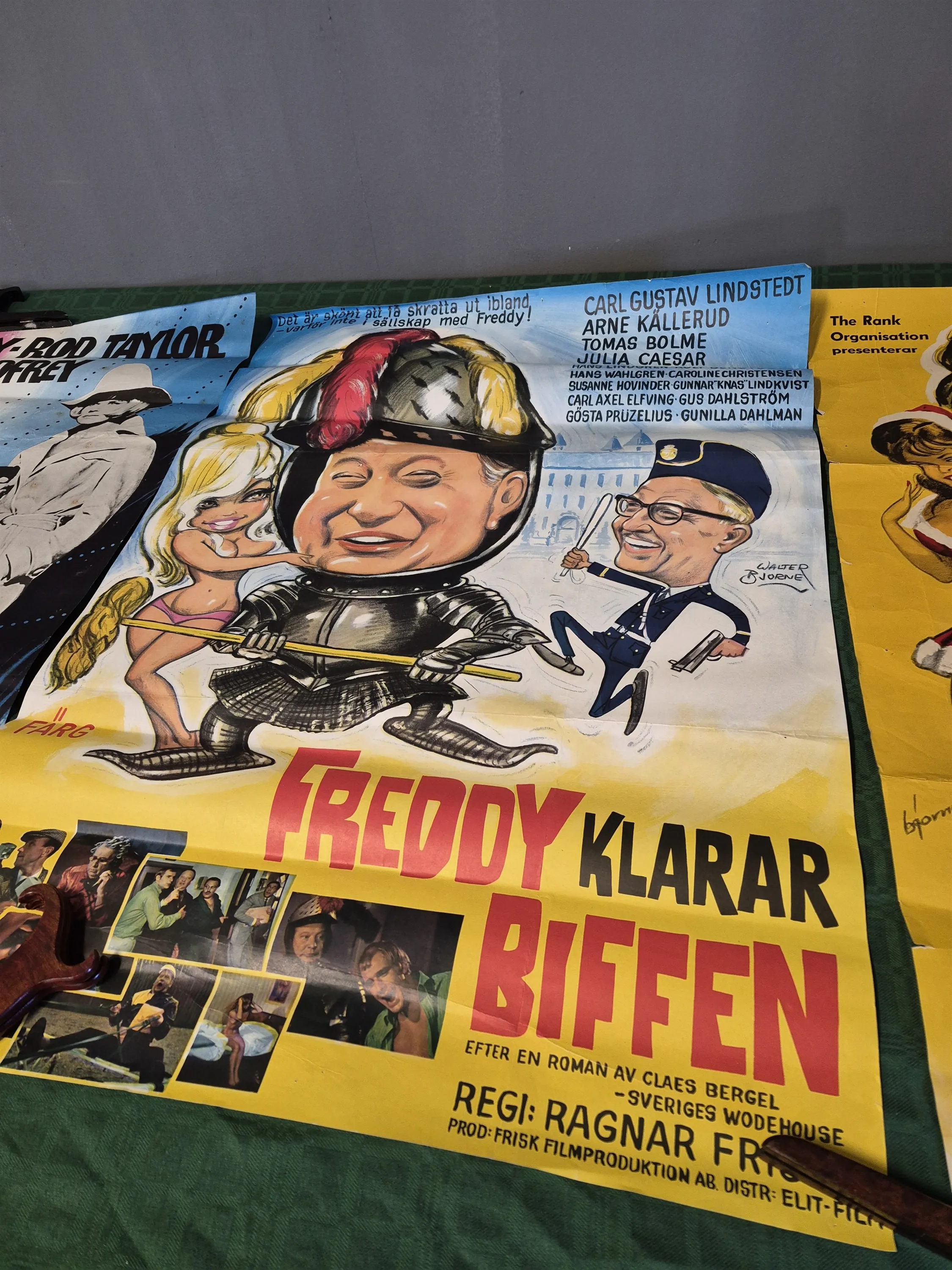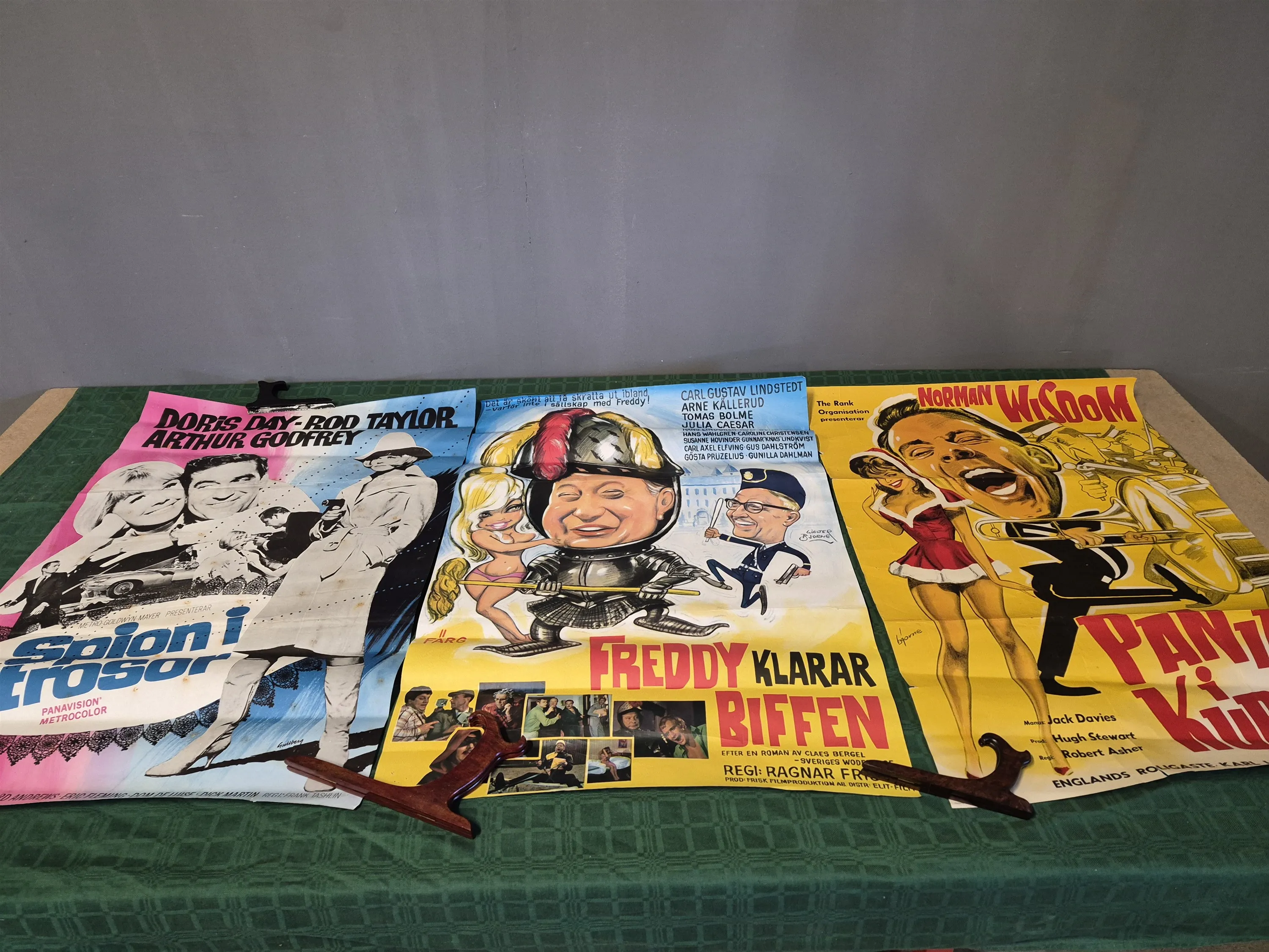 20056. Filmposters 3 st; Spion i trosor, Freddy klarar biffen och Panik i Kubik, defekter och revor finns, mått 100x70 cm