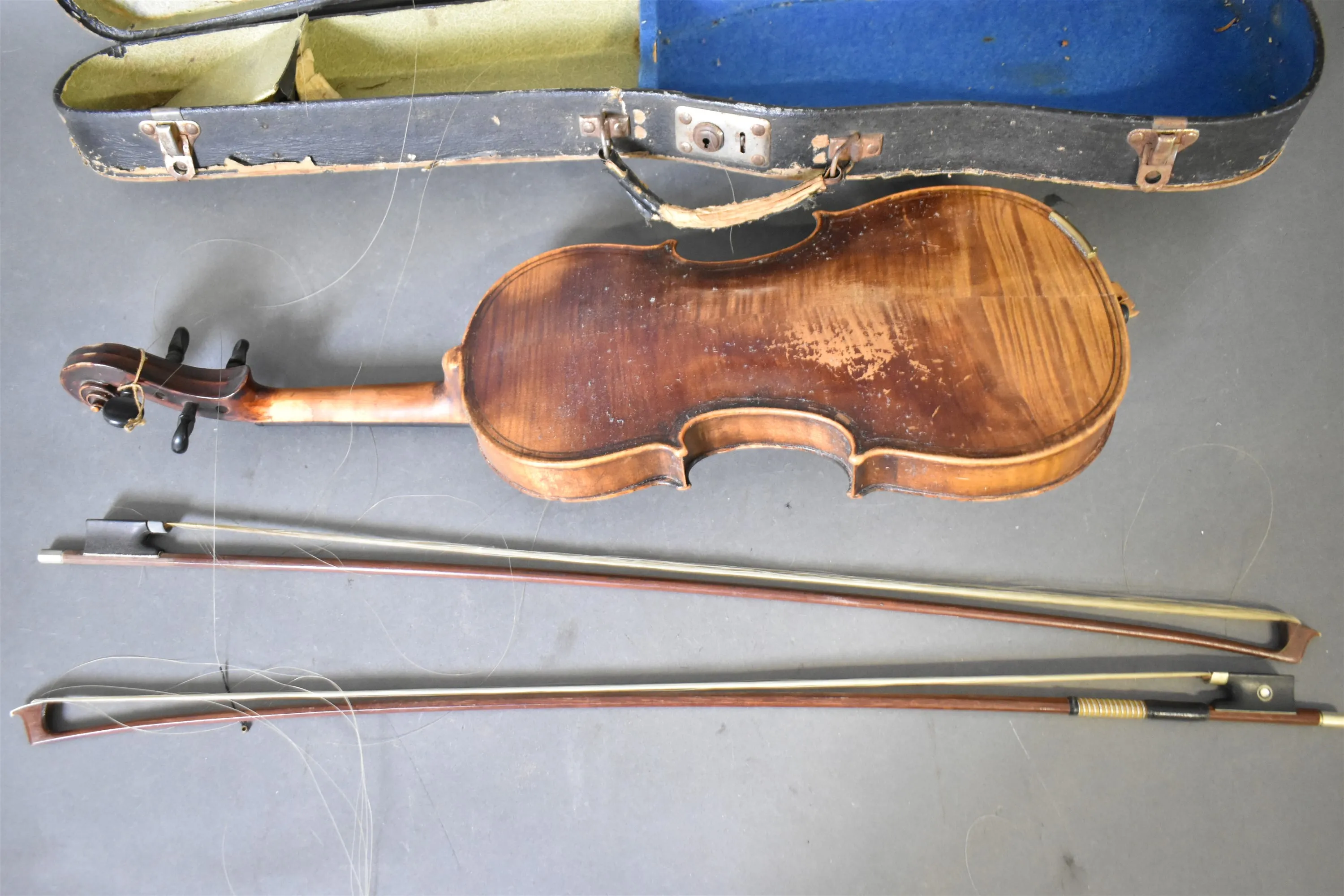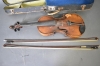 16267. Fiol med stråkar i låda behöver ses över, längd fiol 60 cm