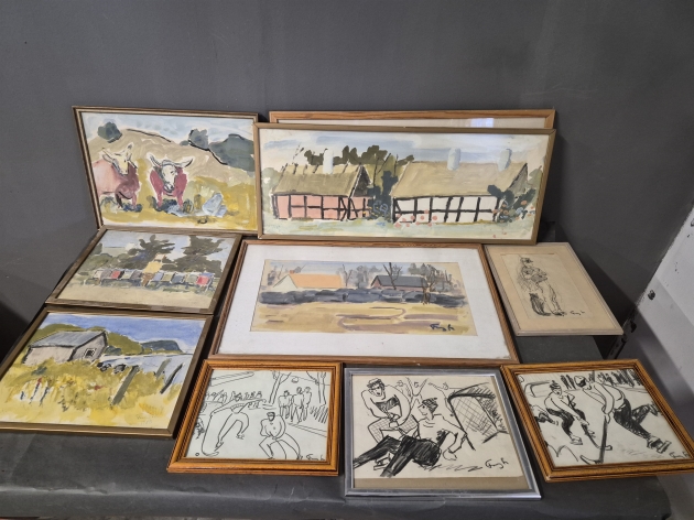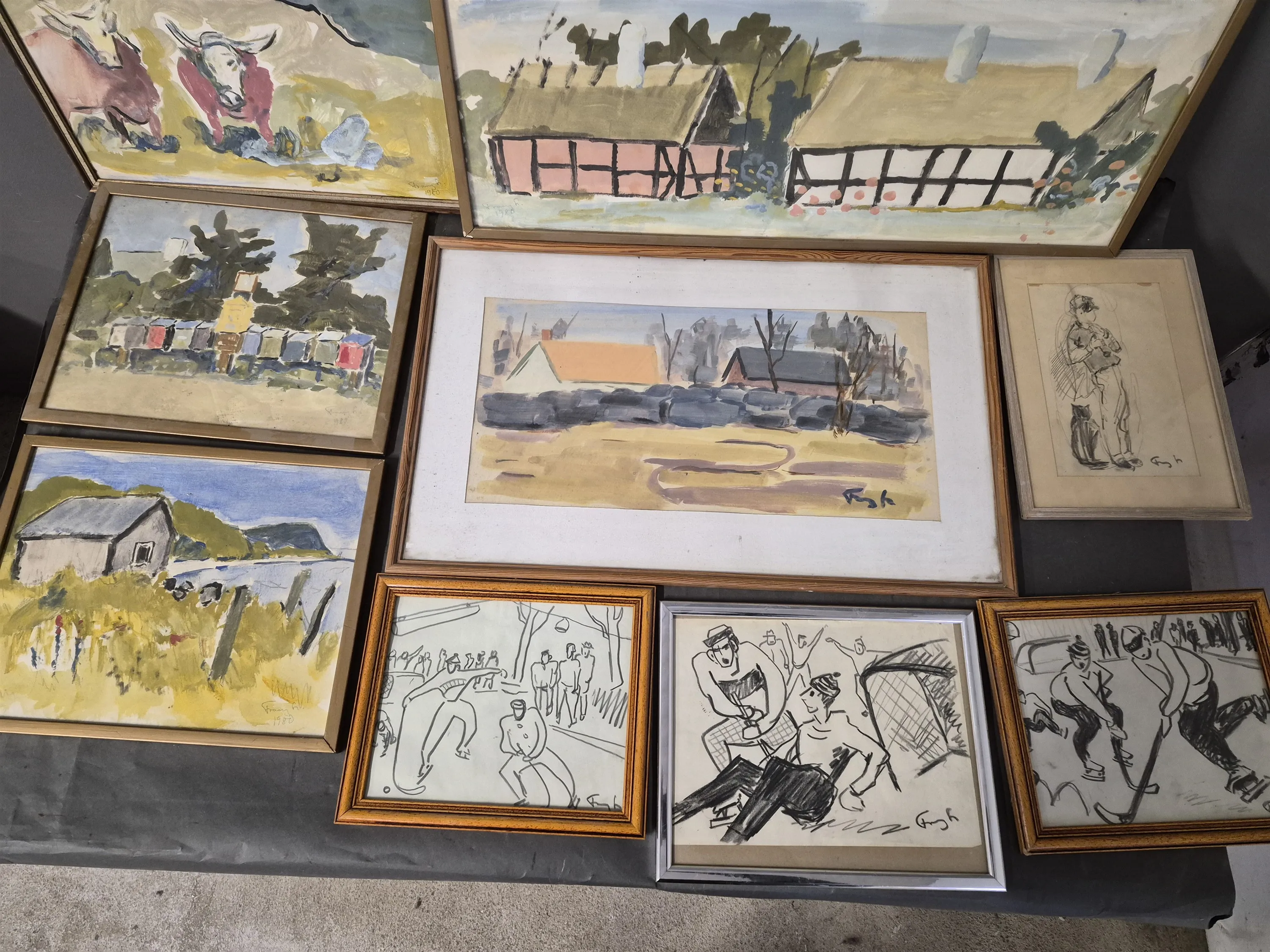 19328. Frans Lundberg akvareller & teckningar, största mått 75 x 309 cm
