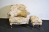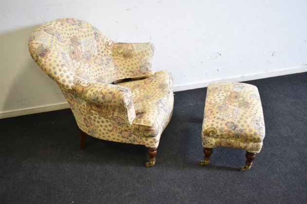 16166. Fåtölj med fotpall, hjultrissor, Engelsk stil, slitage på karmar höjd 80 cm