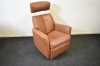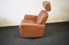 11496. Fåtölj med utfällbart fotstöd, snurr och gungfunktion, skinn, höjd 114 cm