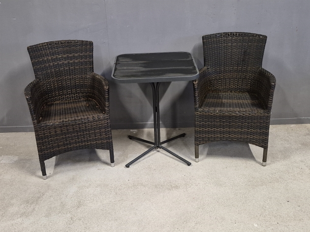 19255. Fåtöljer 1 par & bord, konstrotting, högsta 96 cm