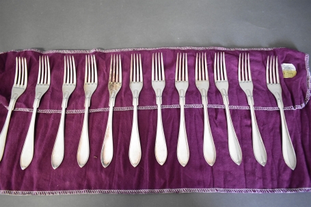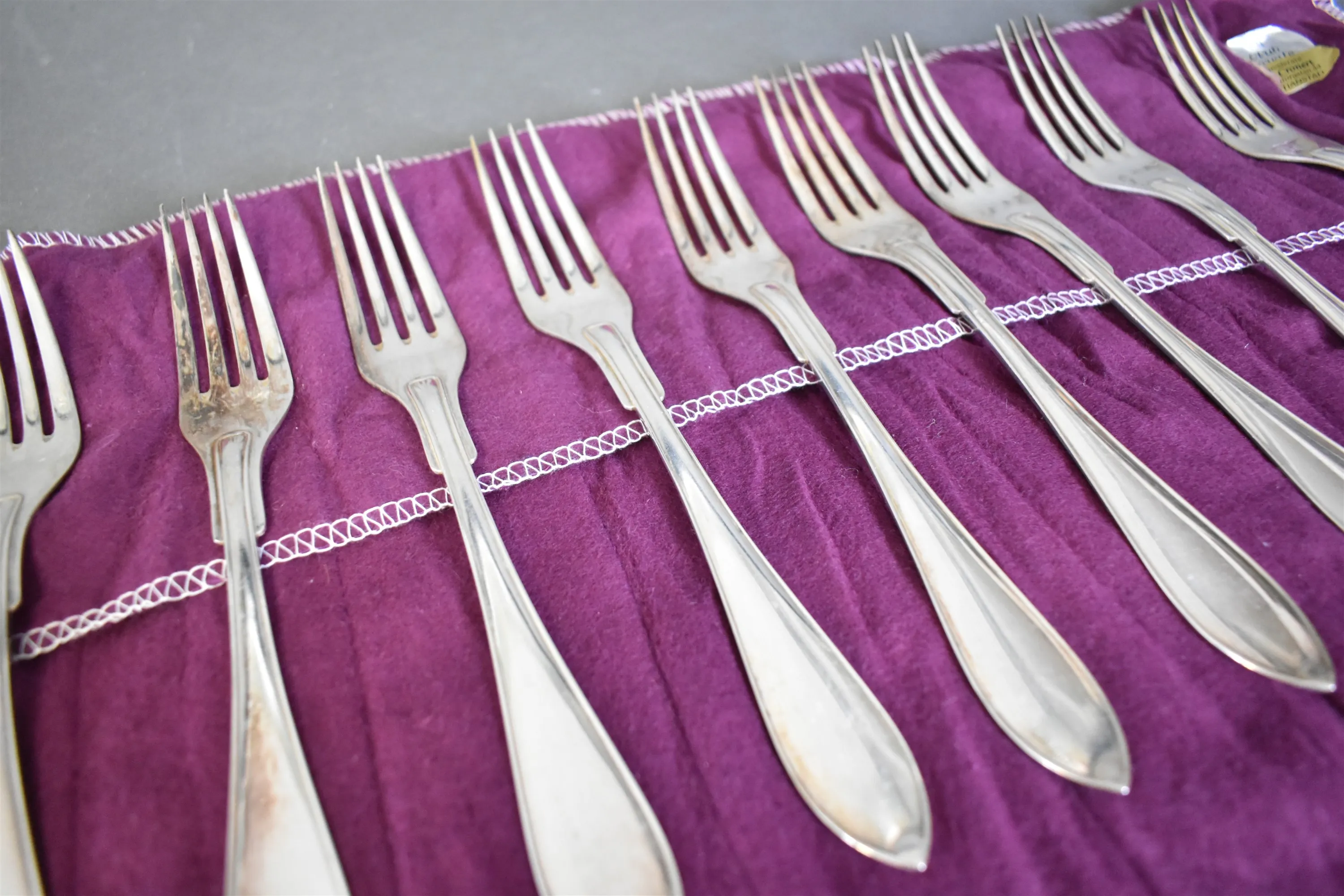 7124. Gafflar 12 st, silver, längd 21 cm, totalvikt ca 703 g