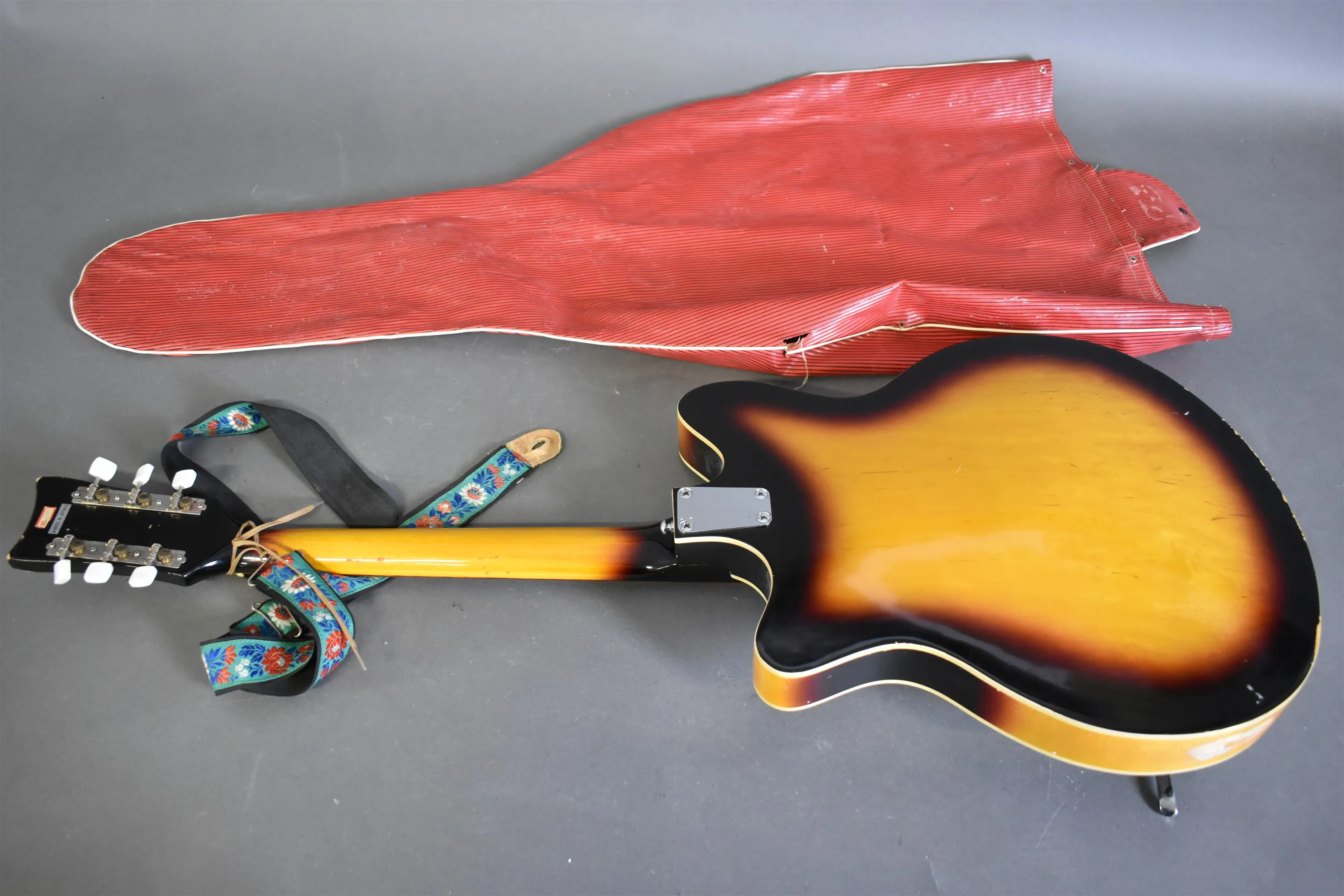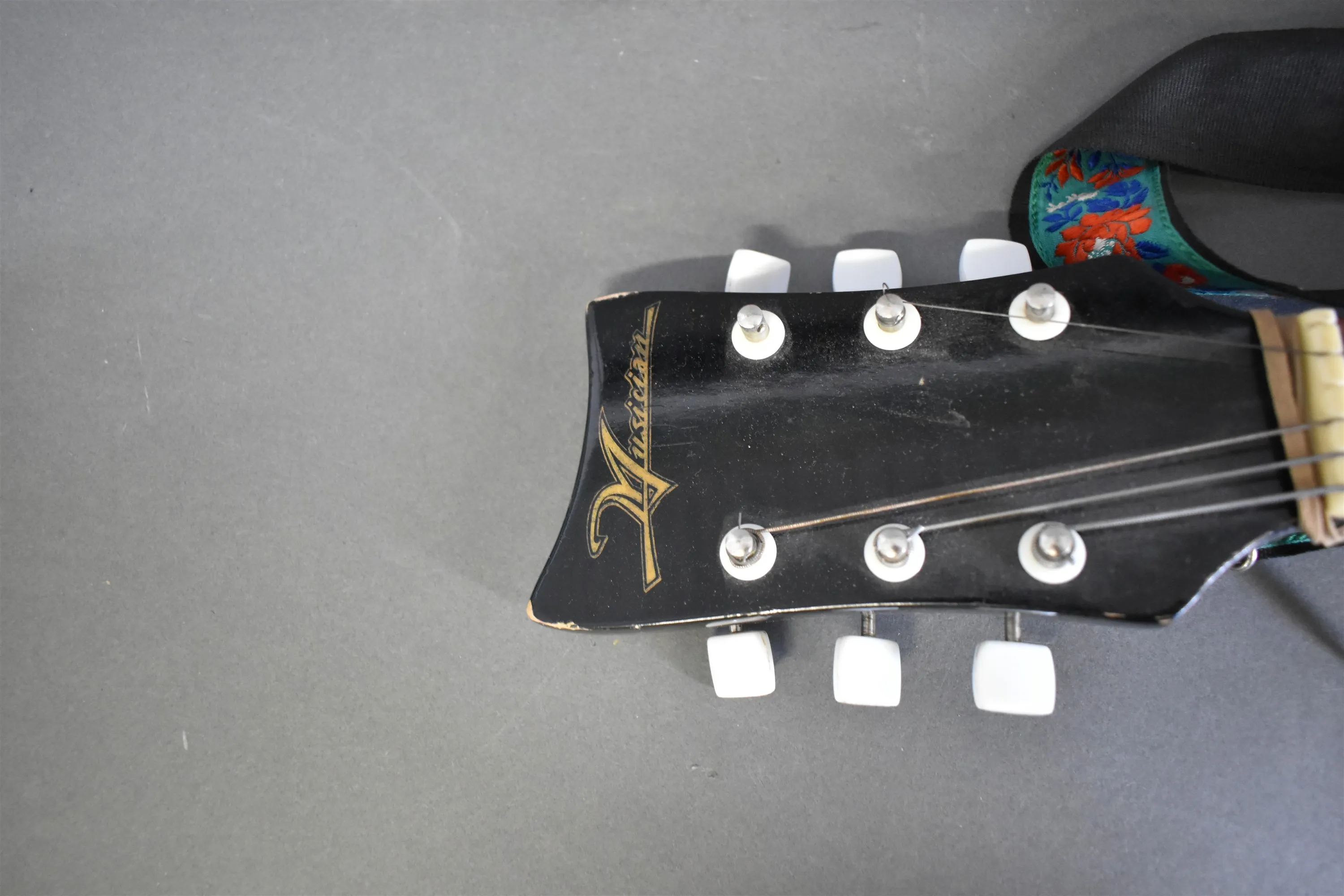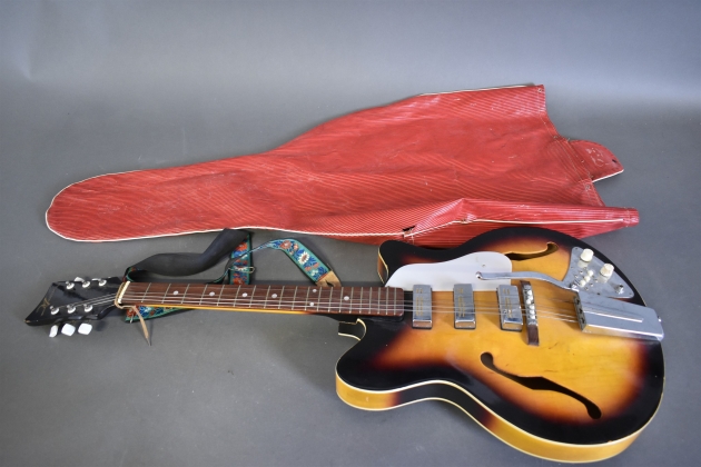 16481. Gitarr, halv aukustisk, 2 strängar saknas, längd ca 100 cm
