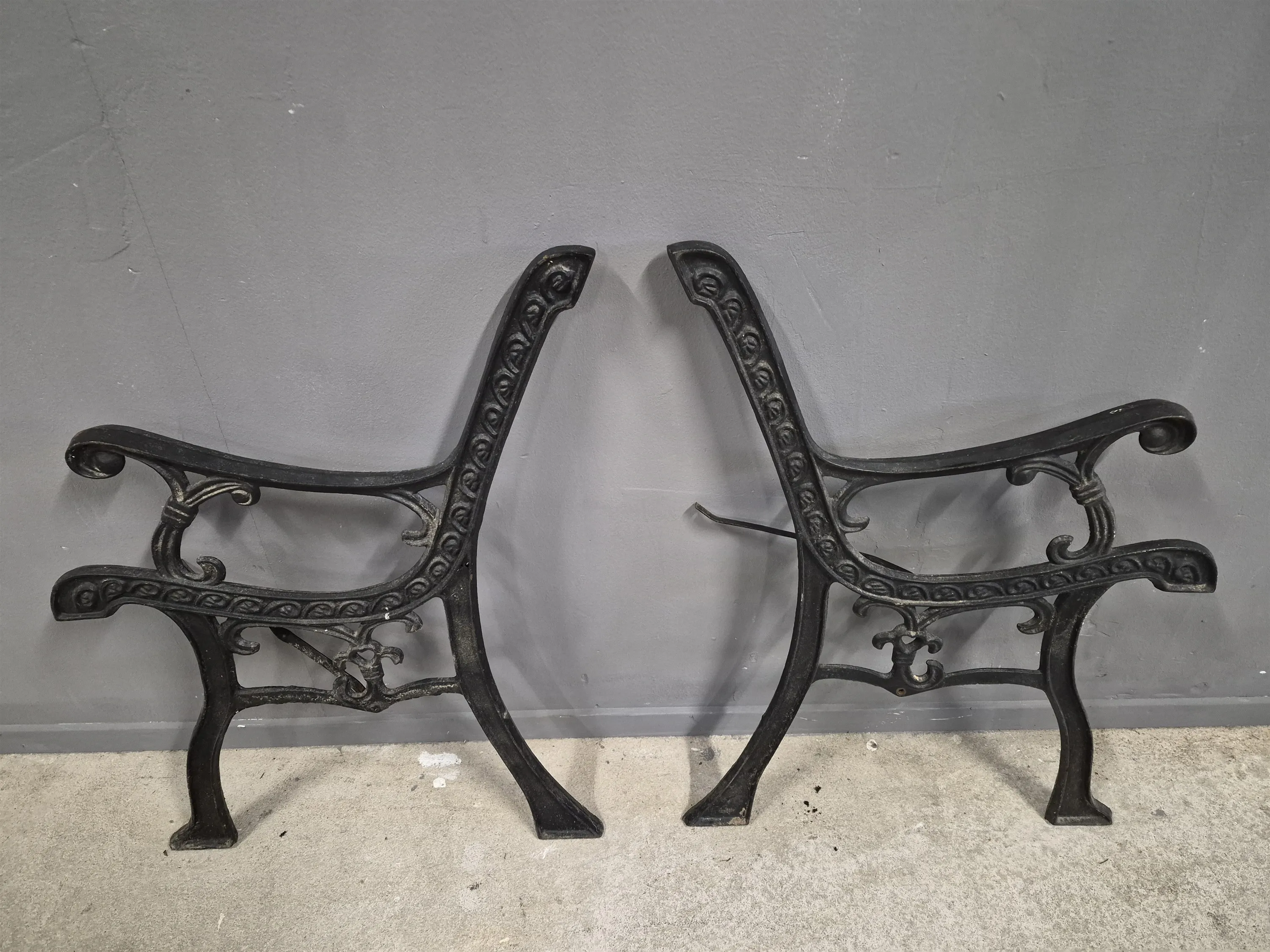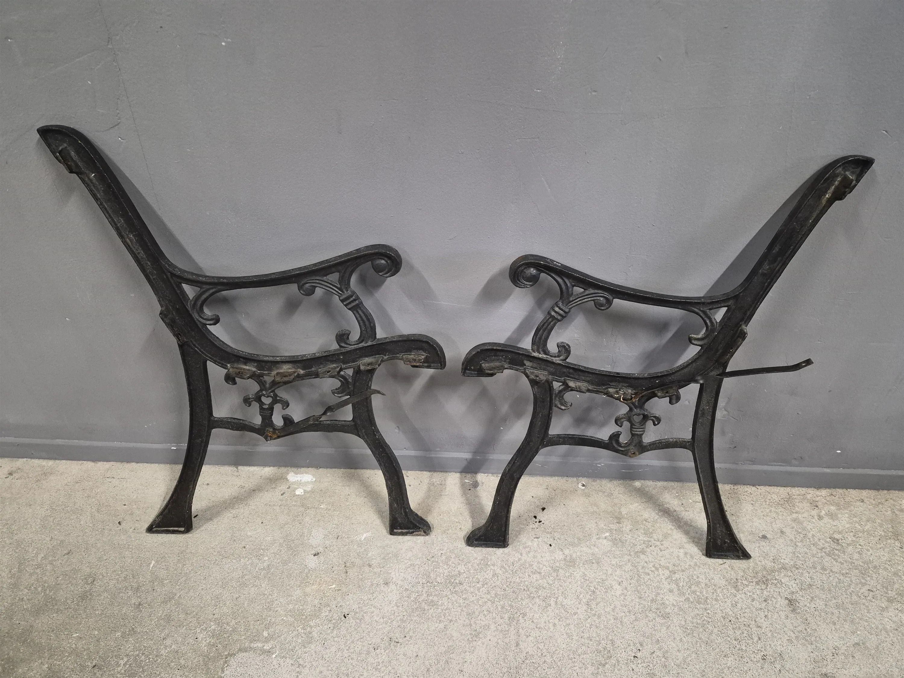 18177. Gjutjärnagavlar ett par, höjd ca 65 cm