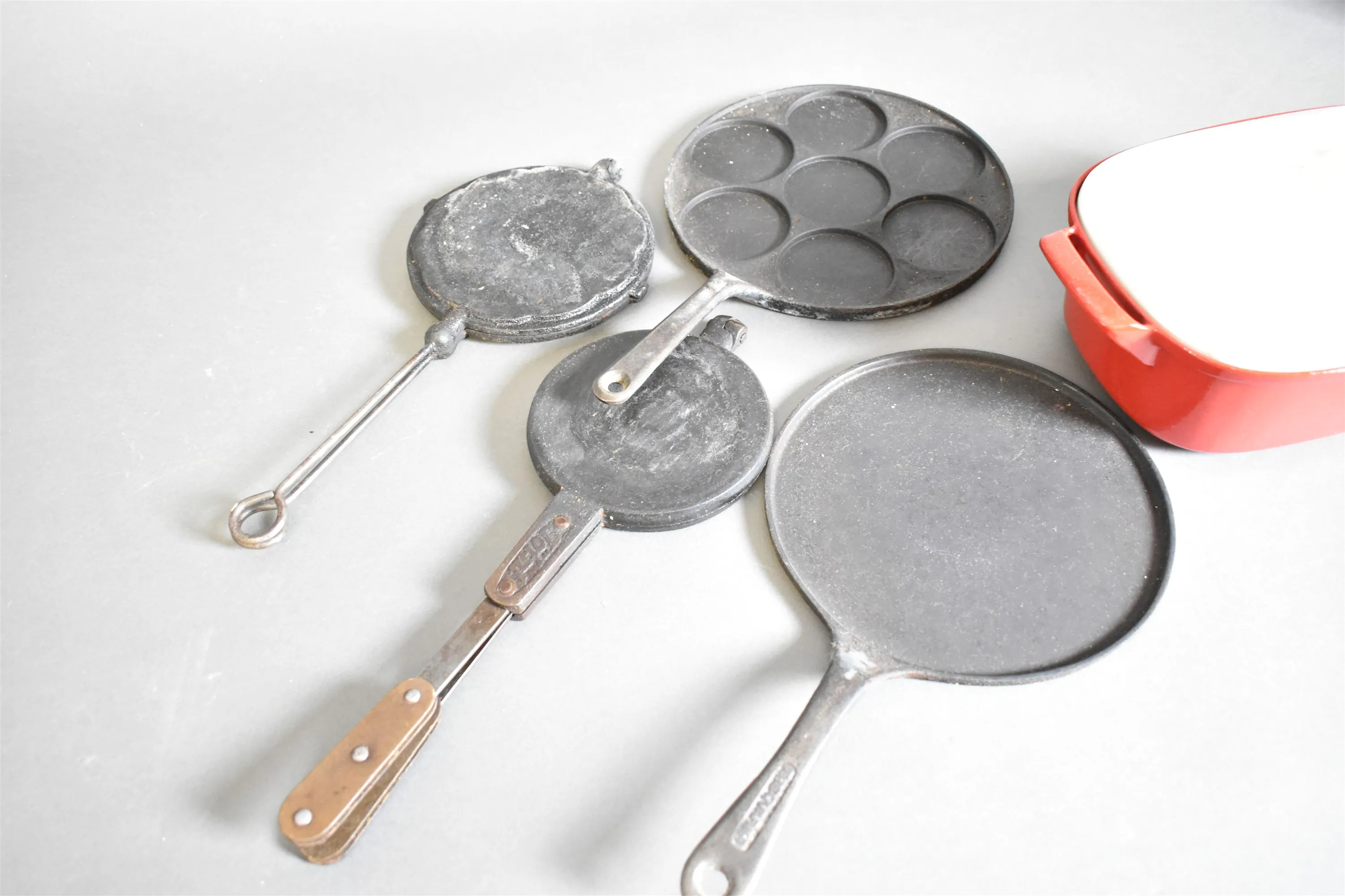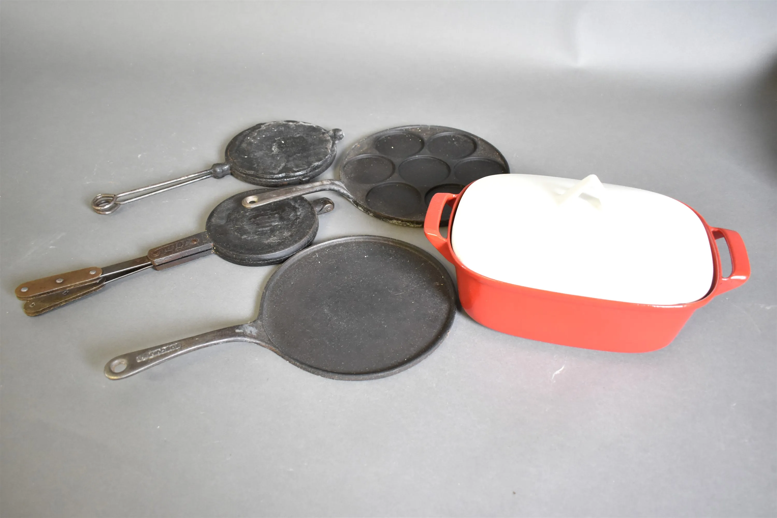 14095. Gjutjärnsgryta, plättjärn & våffeljärn, längsta 42 cm