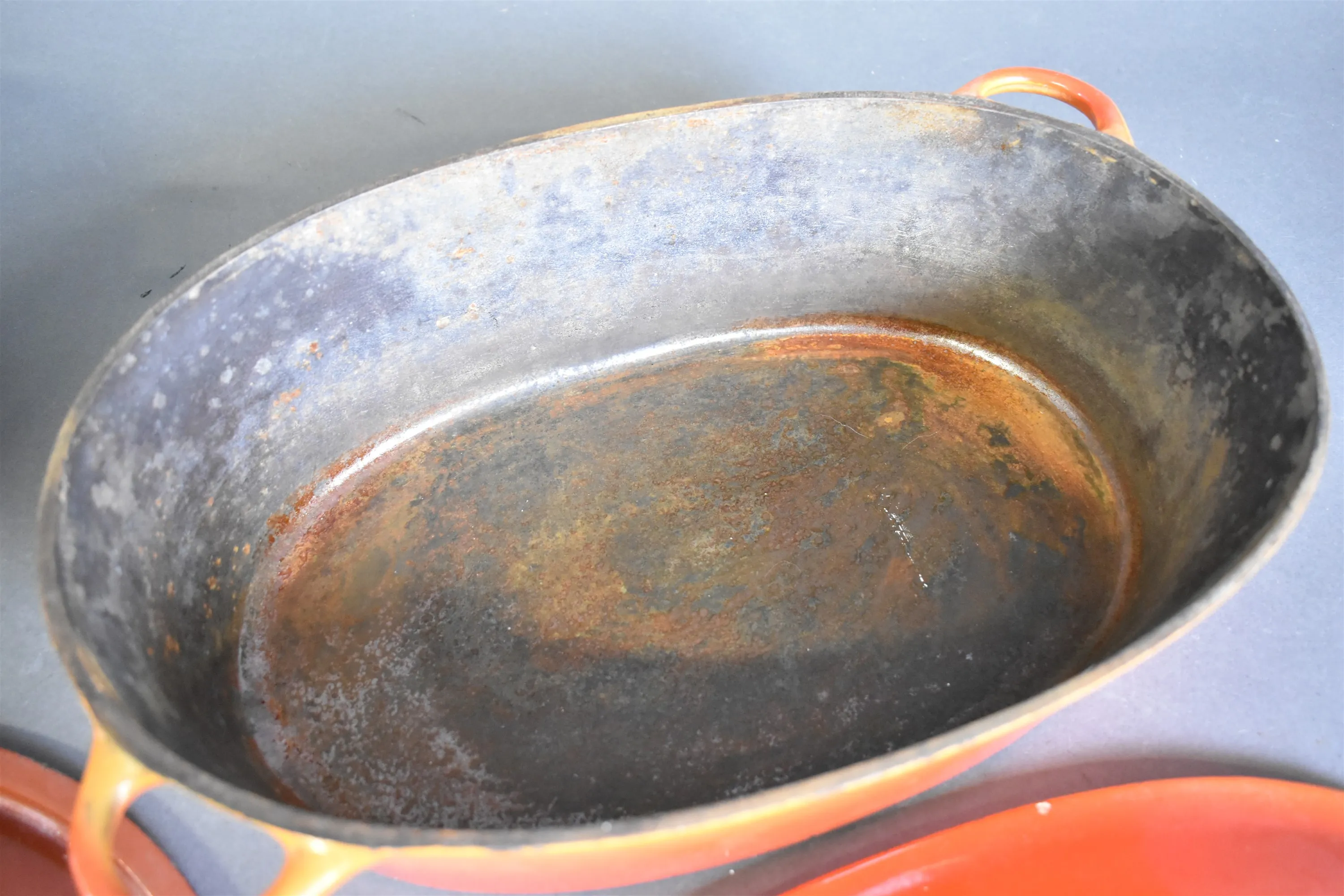 13434. Gjutjärnsgrytor 2 st, längsta mått 38 cm
