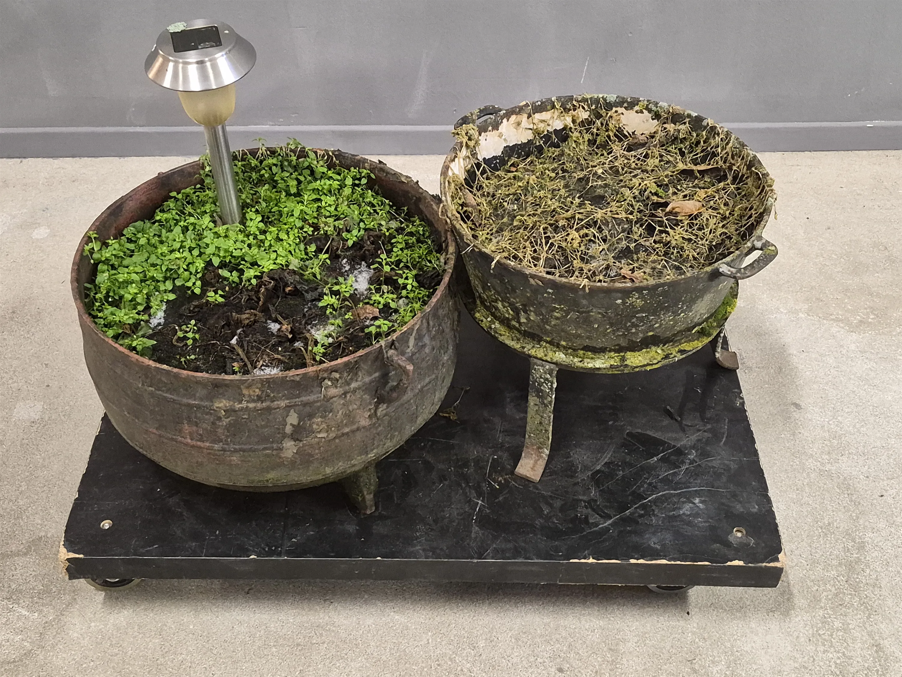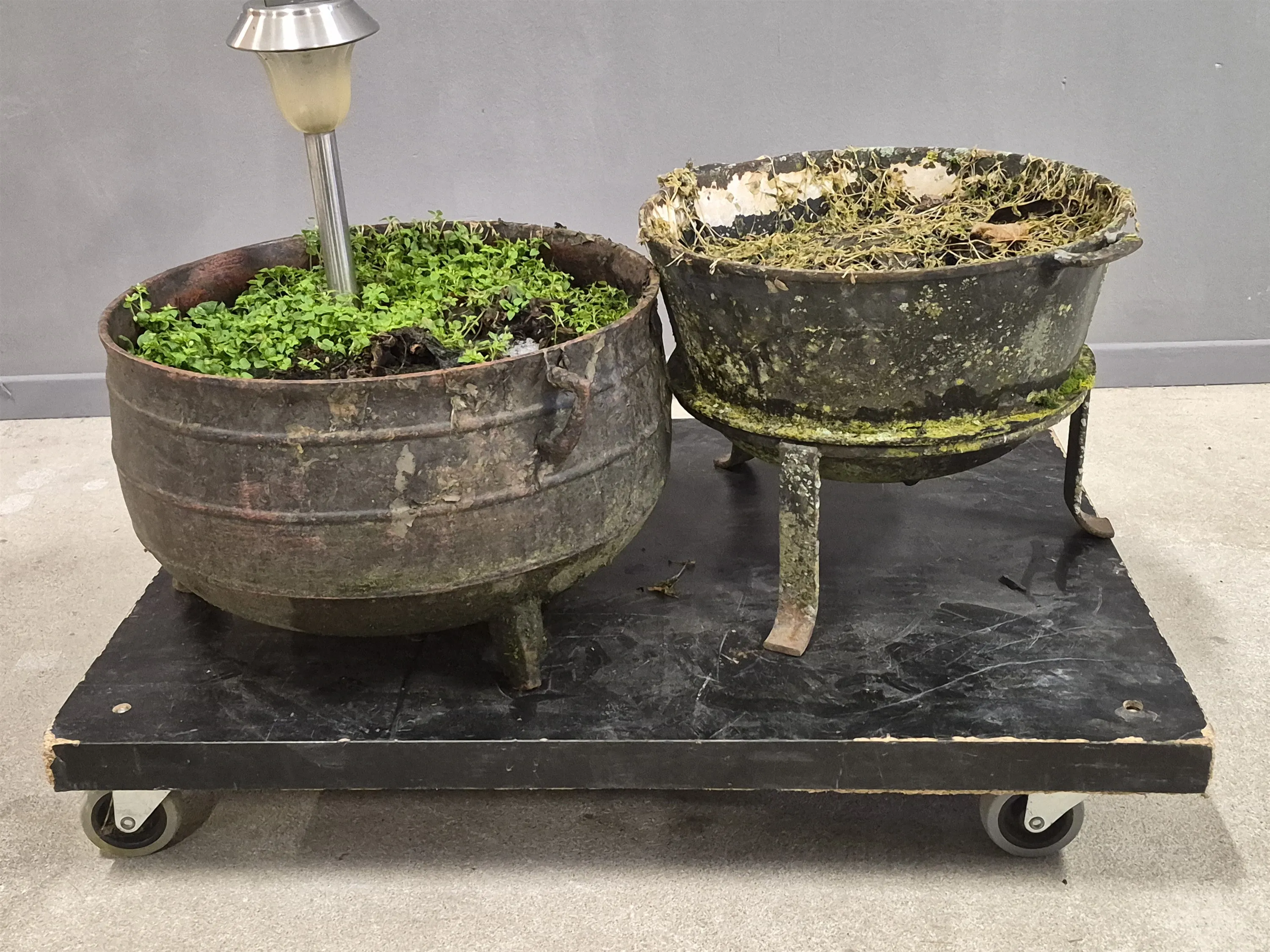 18093. Gjutjärnsgrytor 2 st största diameter 41 cm