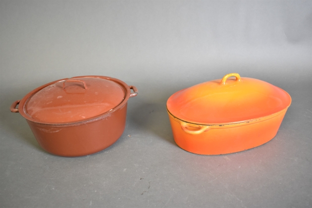 13434. Gjutjärnsgrytor 2 st, längsta mått 38 cm