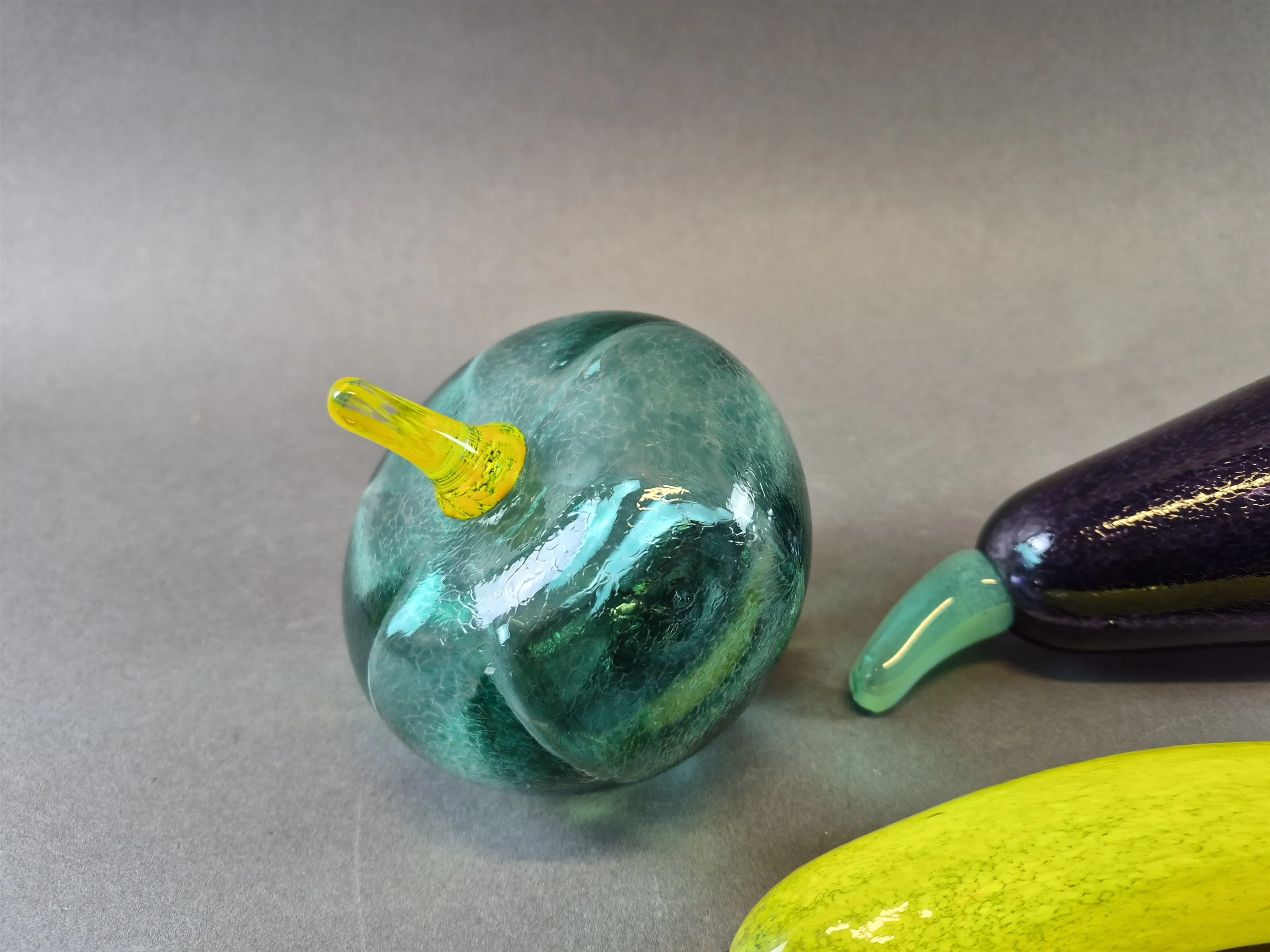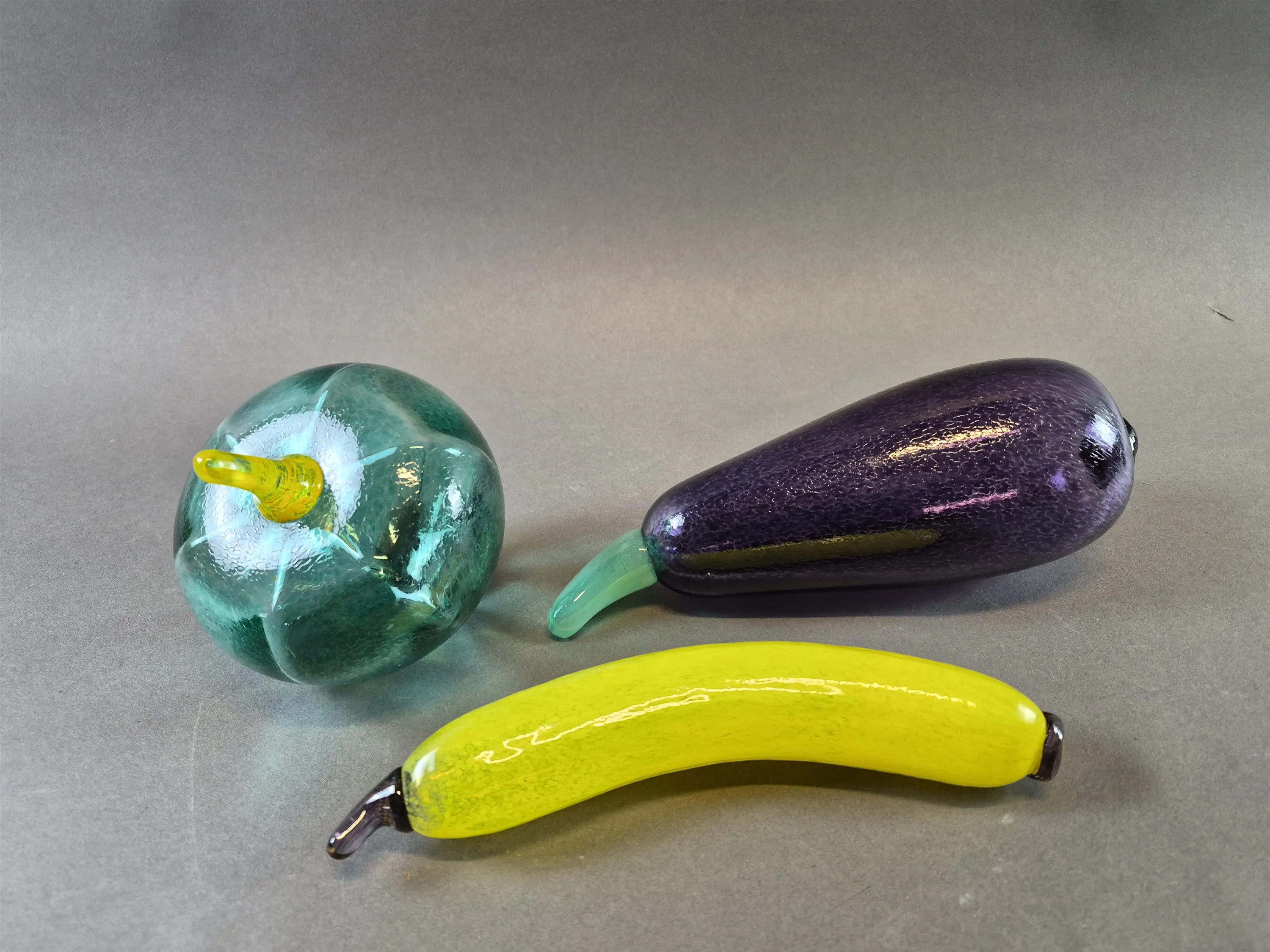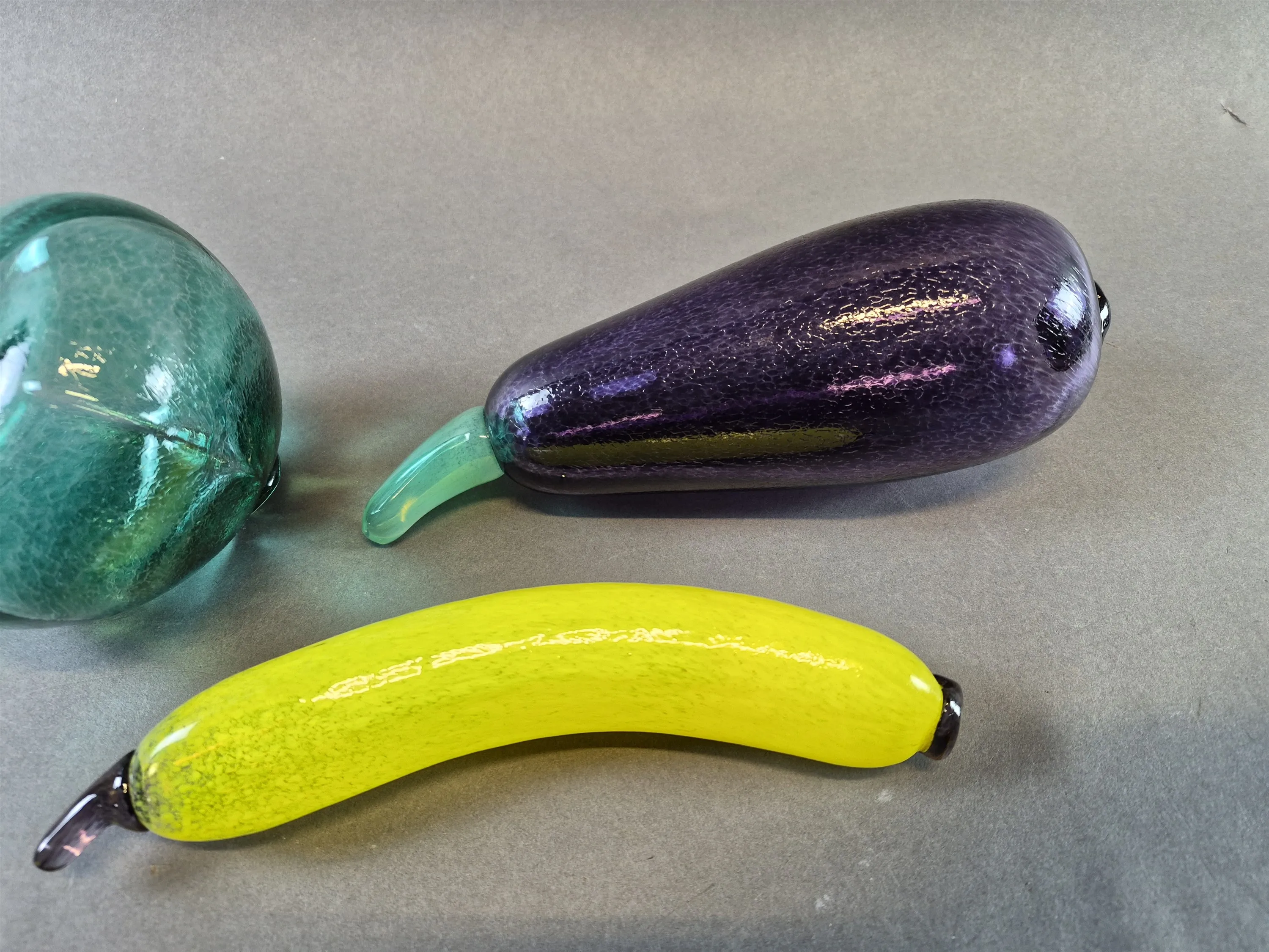 20393. Glasfrukter 3 st Gunnel Sahlin Kosta Boda, längsta mått 21 cm