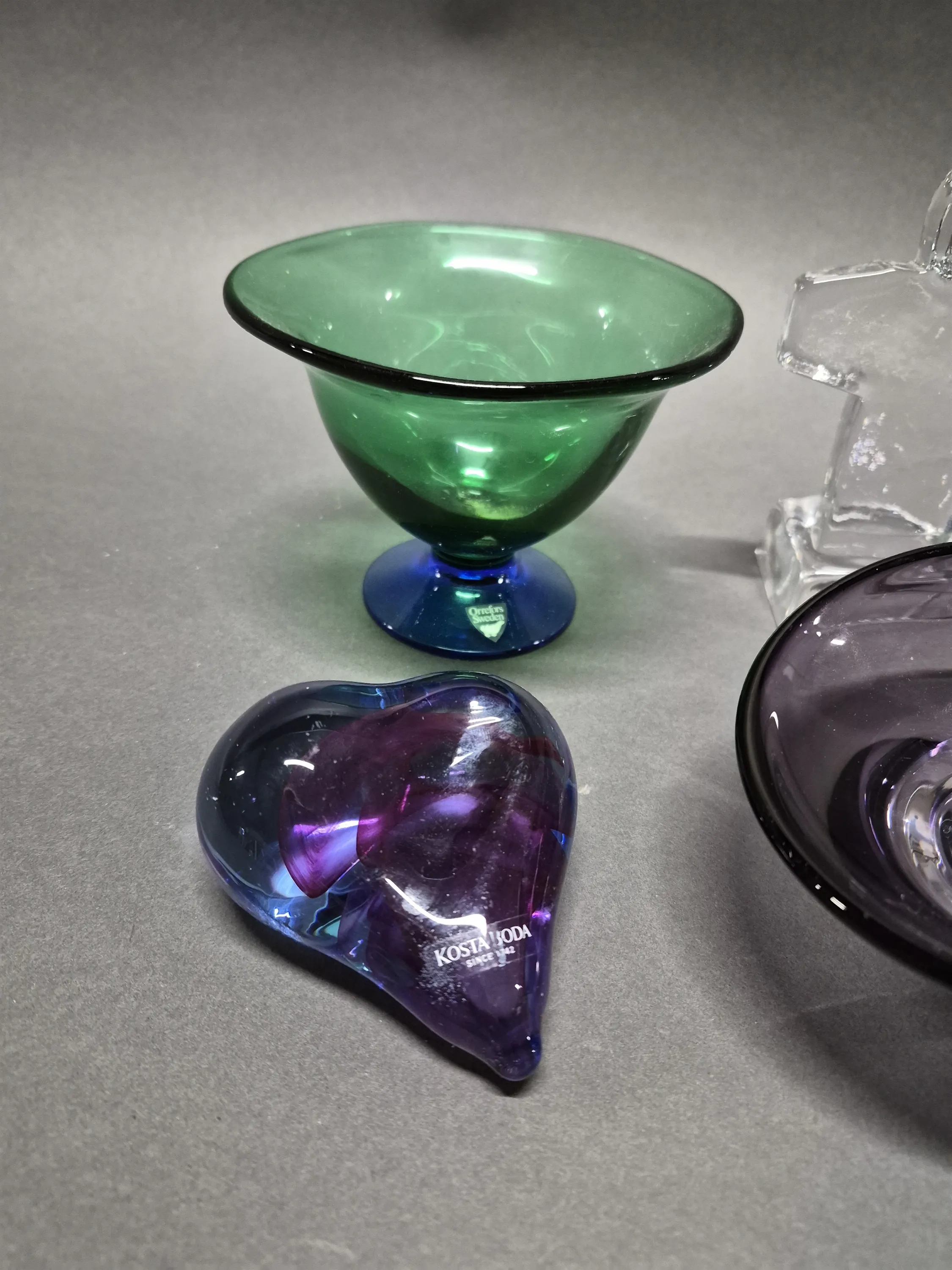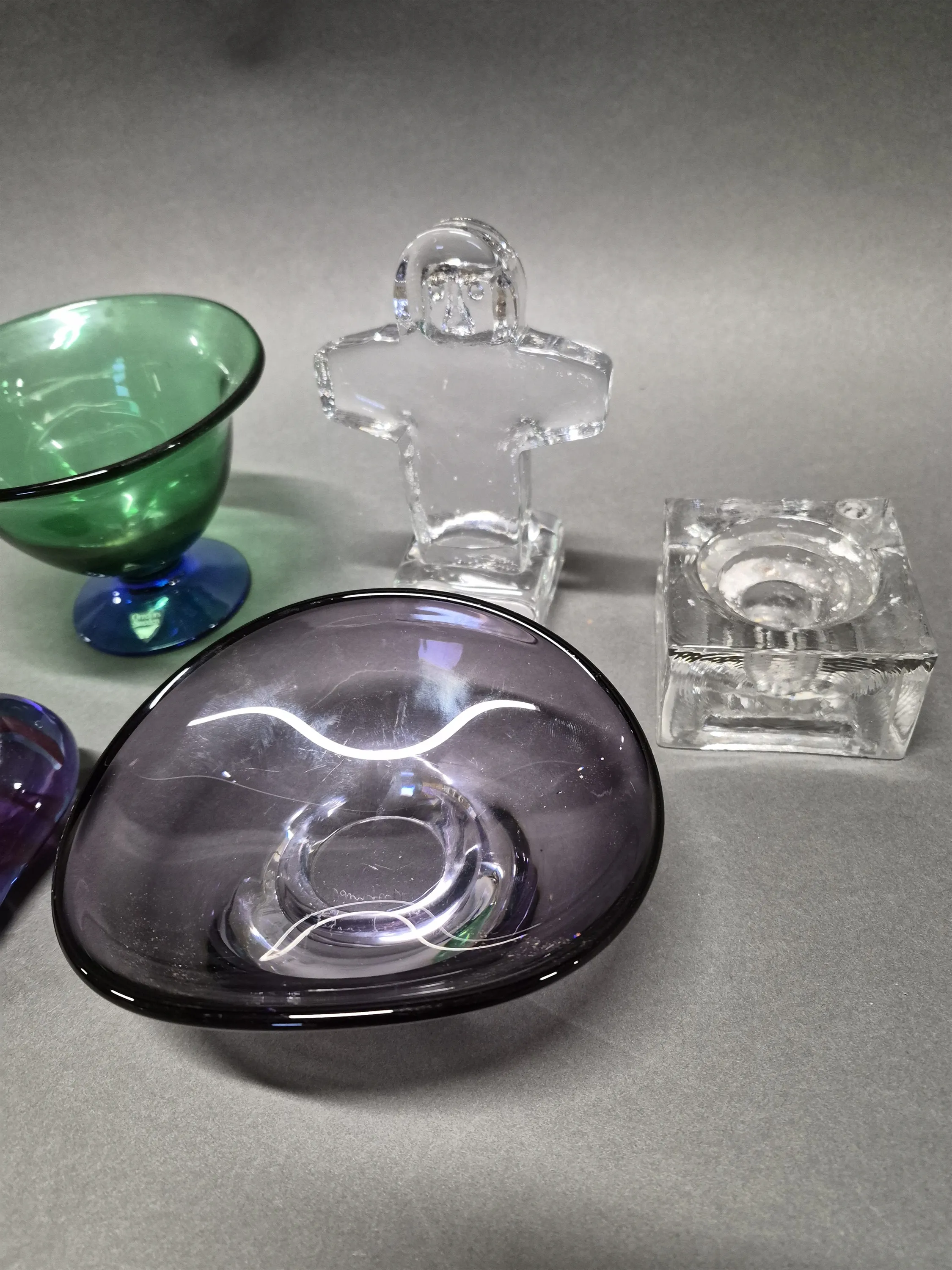 18993. Glaskonst 5 delar bla Bertil Vallien och Orrefors, högsta höjd 14 cm