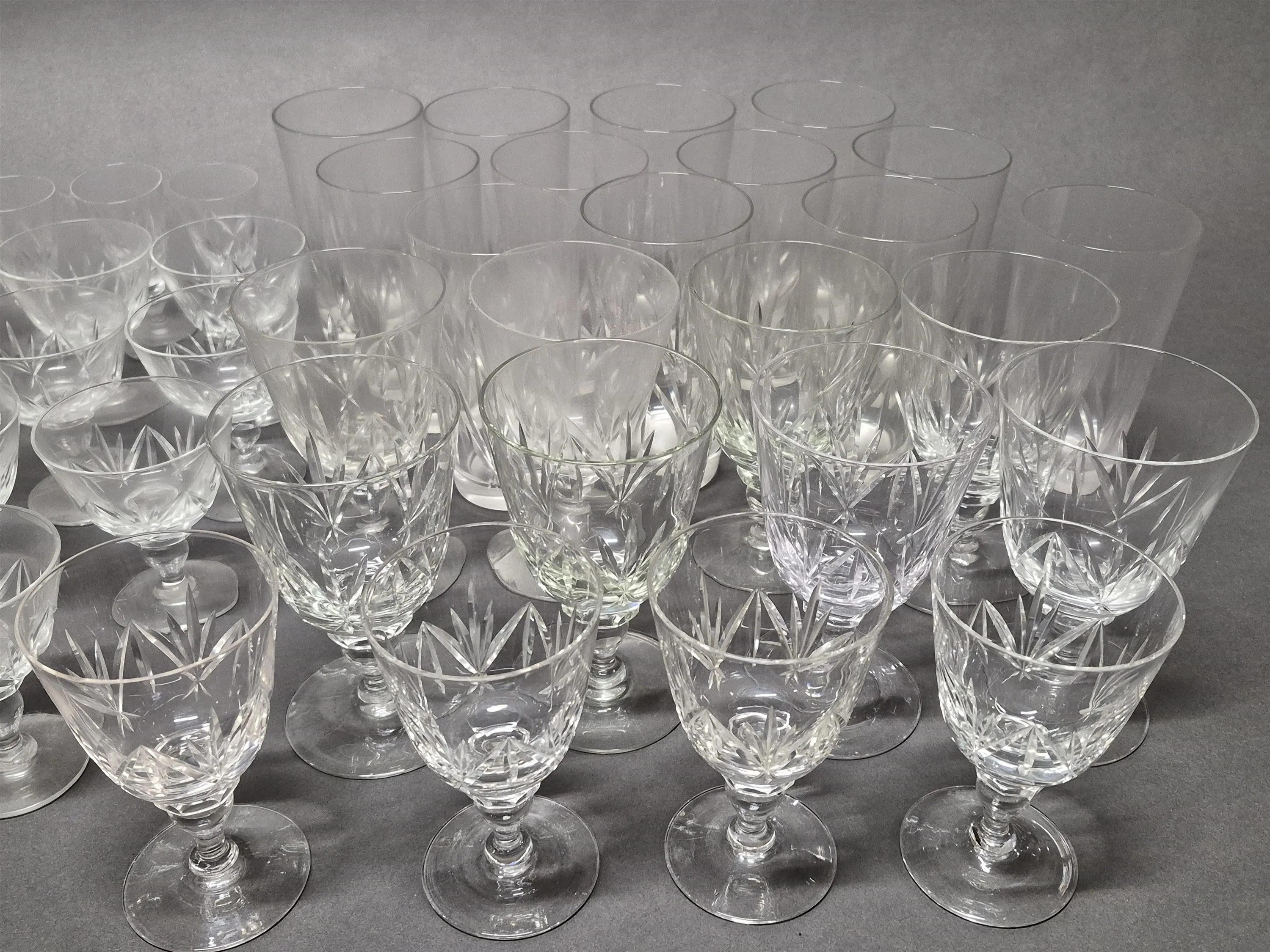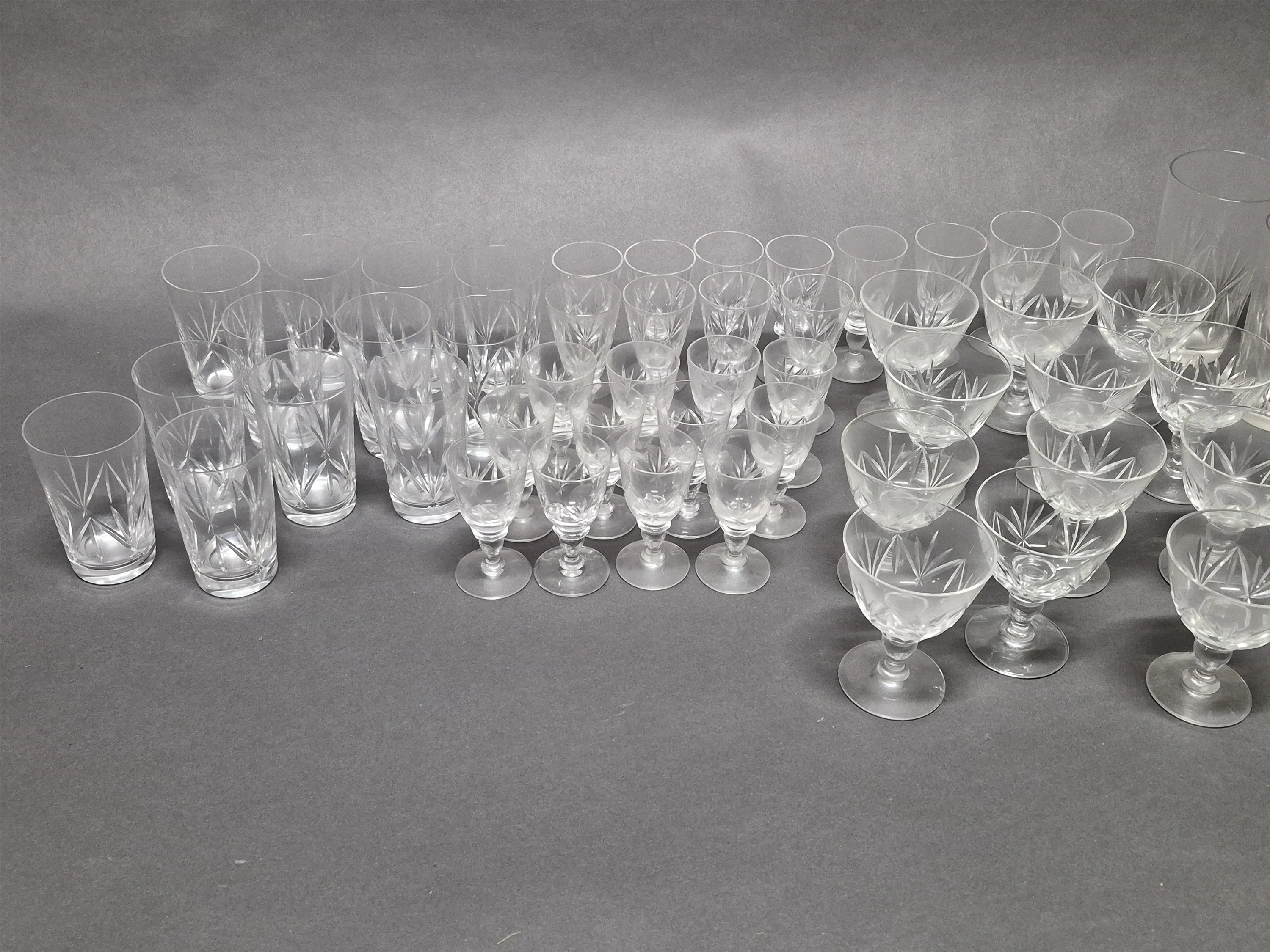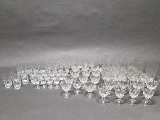 17895. Glasservis, slipad dekor, högsta 14 cm