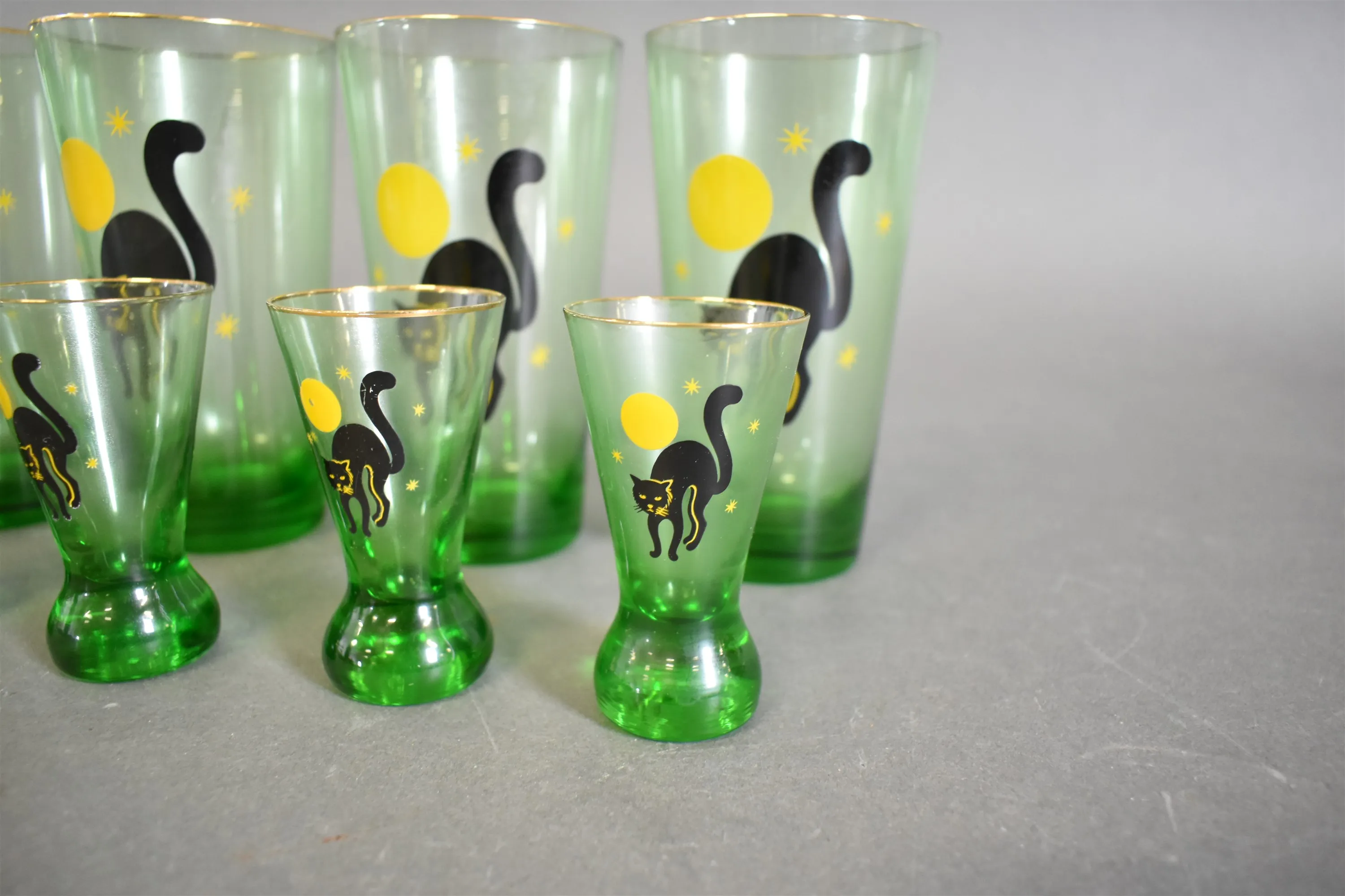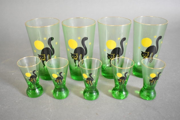 16459. Glasservisdelar 4+5 st, Smålands Alster, Kosta "Katt i månsken", högsta höjd 15 cm