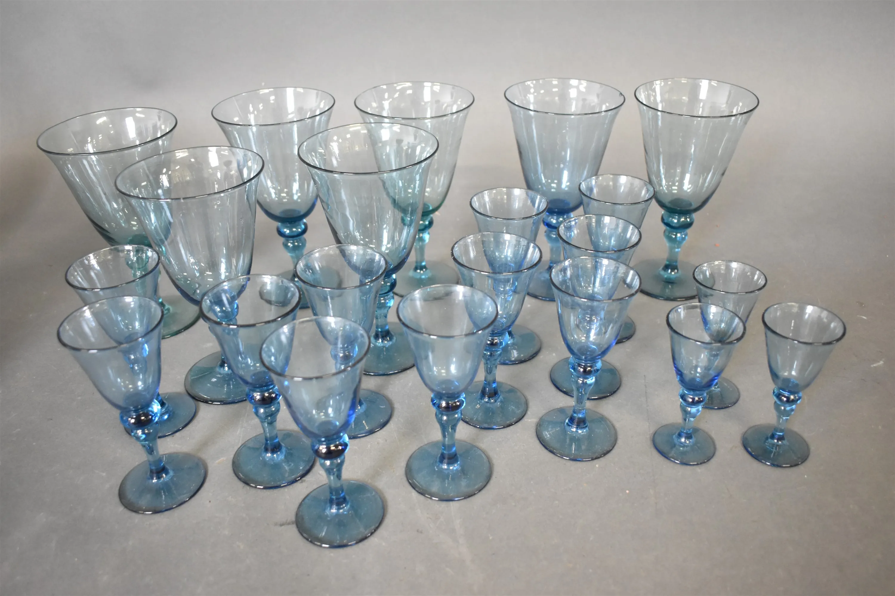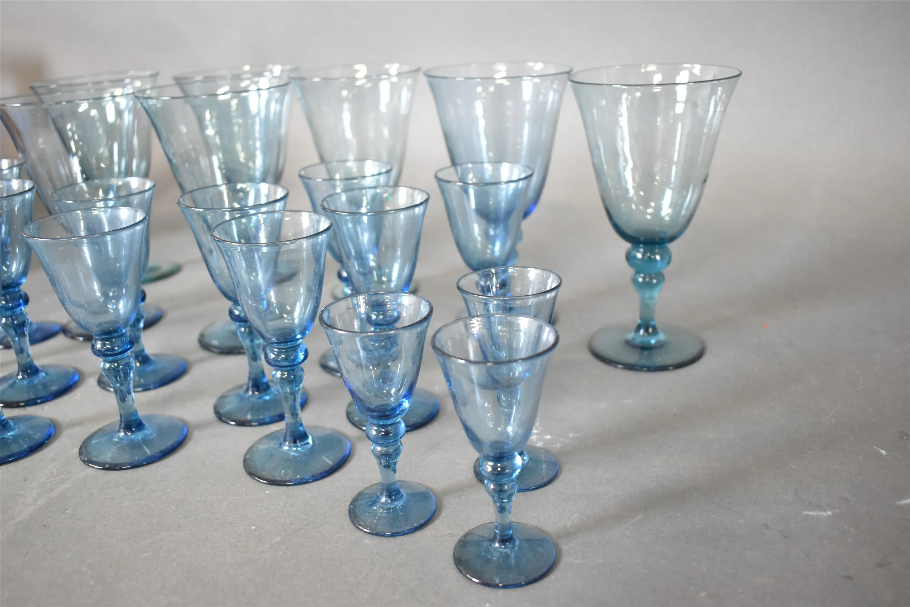 14407. Glasservisdelar blåton, högsta 17 cm, någon nagg finns