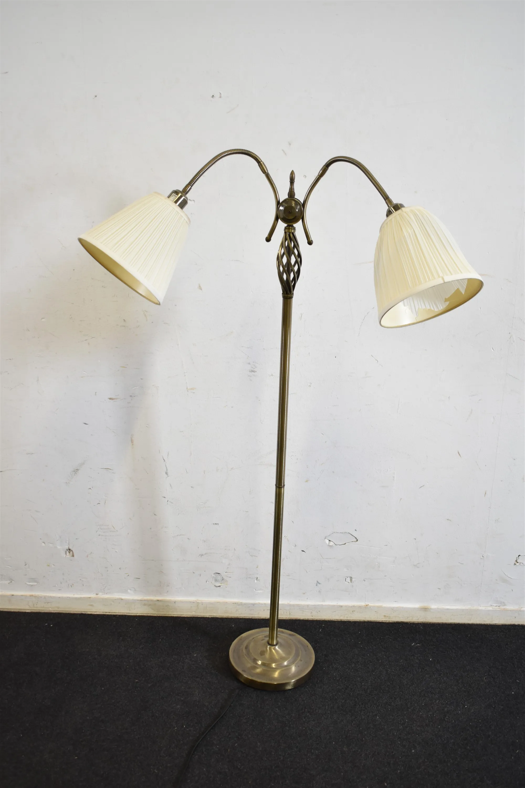 15391. Golvlampa, 2 armad, patinerad mässing, höjd 147 cm