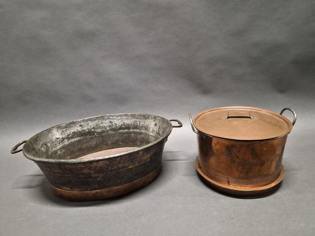 17534. Gryta med lock och balja, längsta mått 55 cm
