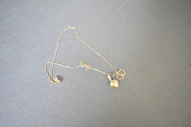 15746. Guldhalsband med 2 st hängen "hjärtan", 18k, totalvikt 2,86 g