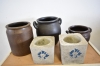 14134. Höganäskrus 3 st och 2 st cementkrukor, högsta höjd 28 cm