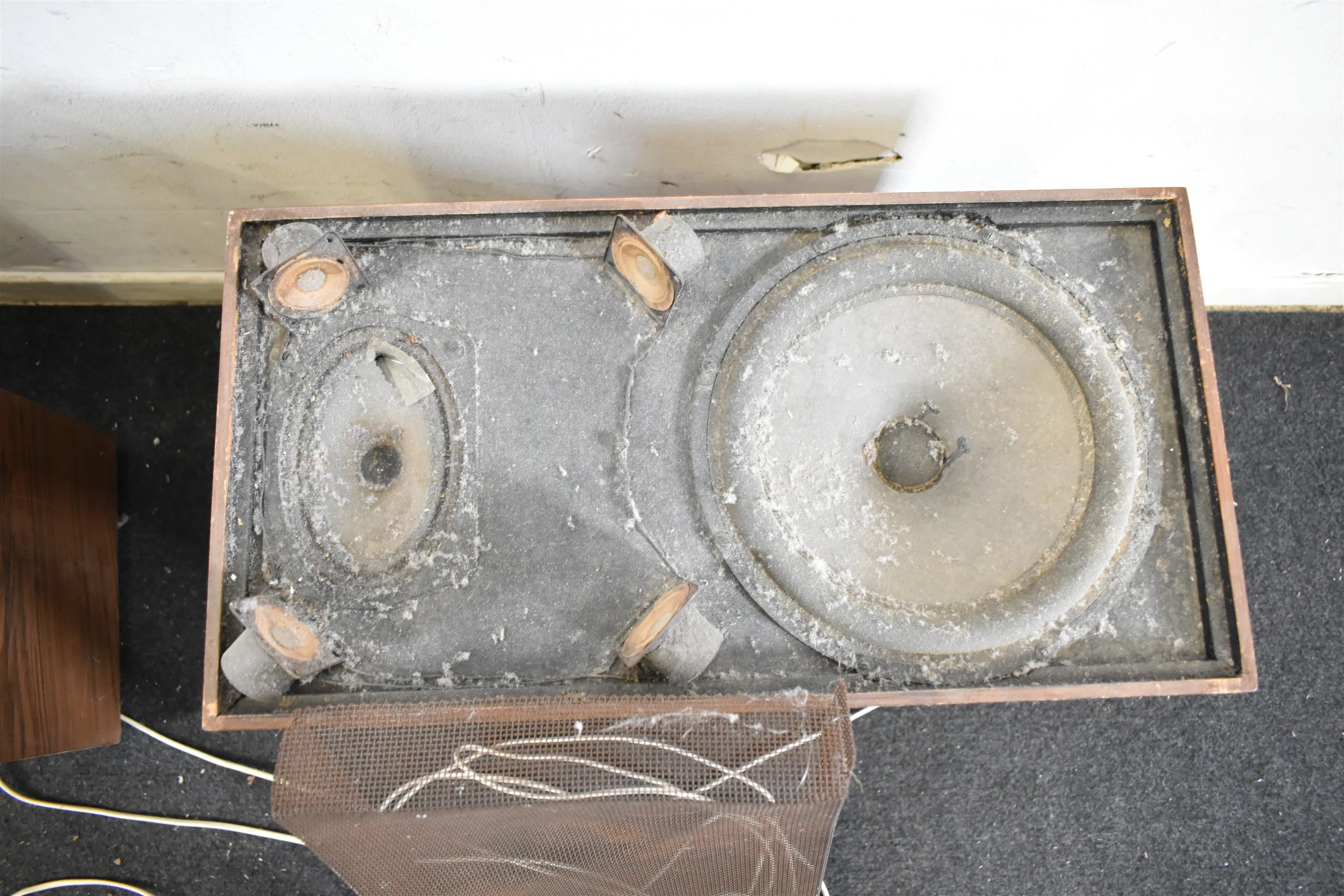 11870. Högtalare 2 st, Carlssonmodell, 70 tal, sälje ssom renoveringsobjekt, längd ca 50 cm