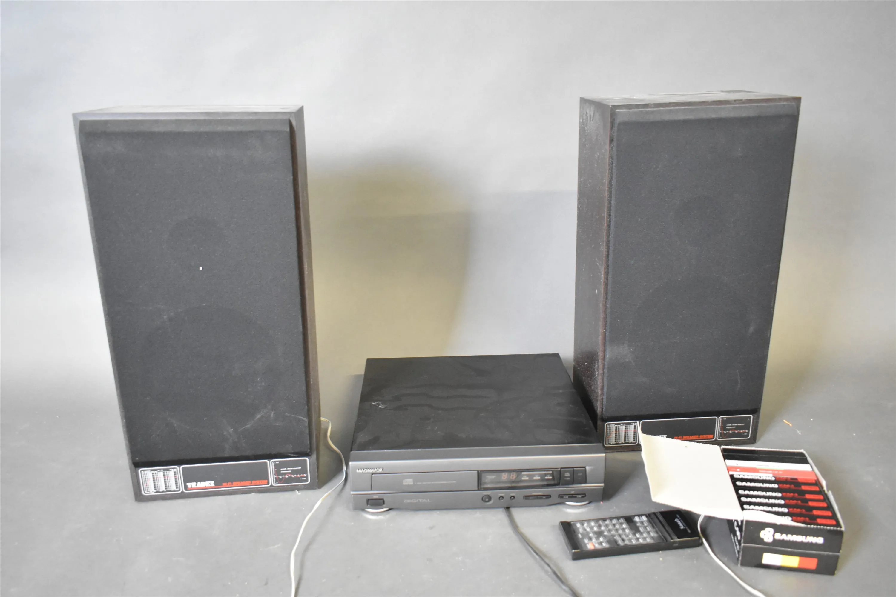 4913. Högtalare och kassettspelare bl.a Tradex, högsta 55 cm