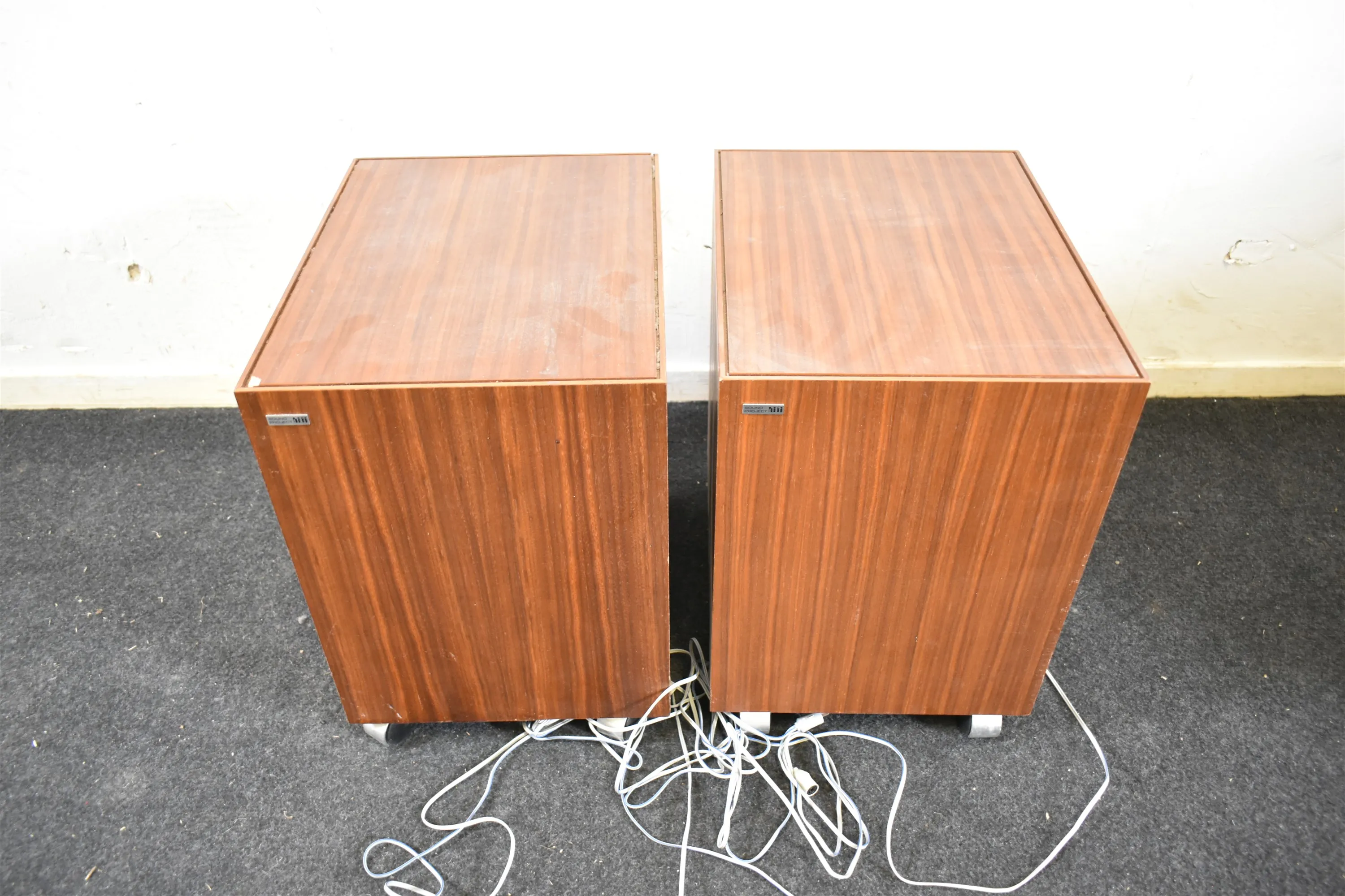 9194. Högtalare på hjul, HiFi, teak höjd 45 cm