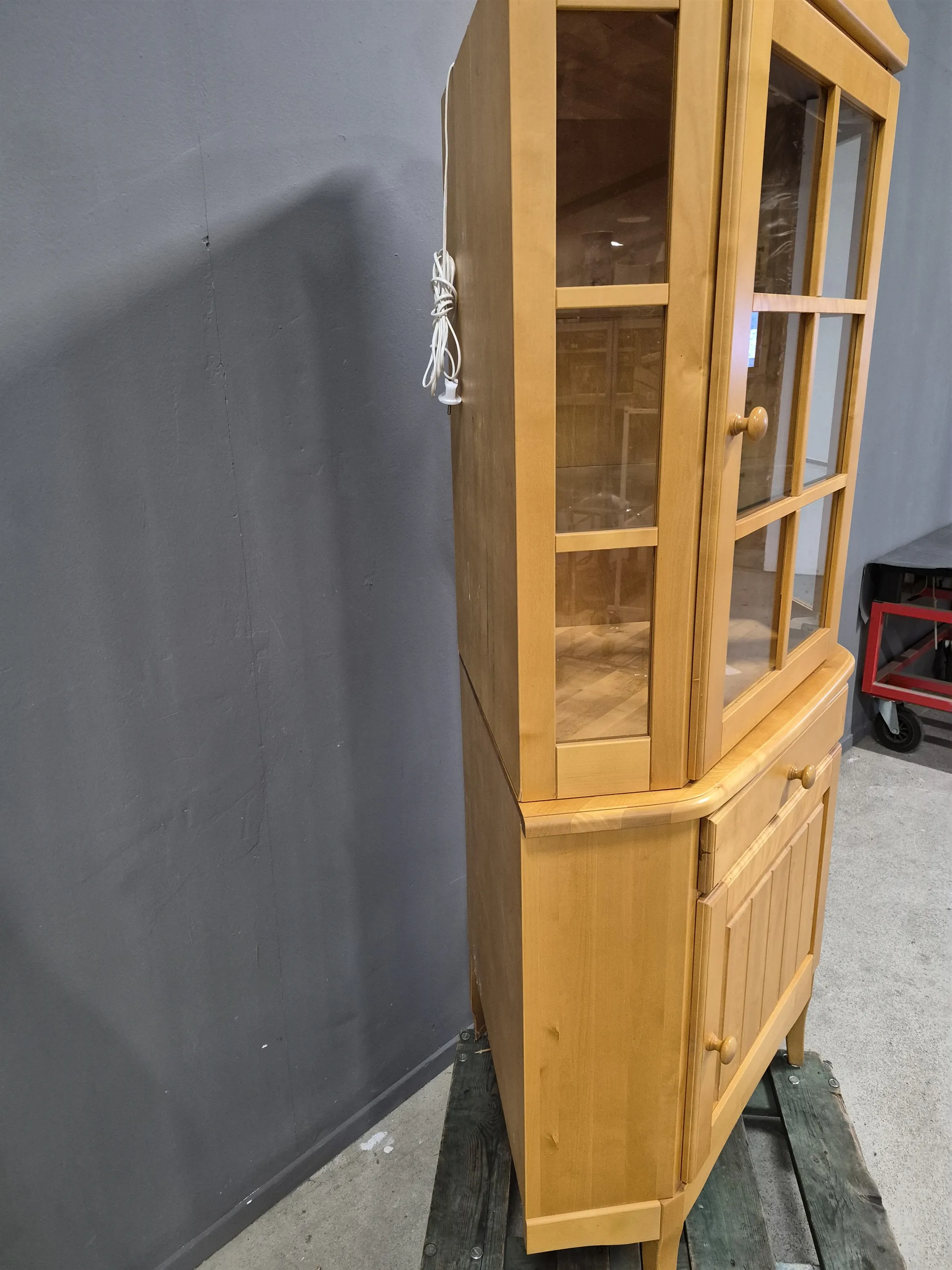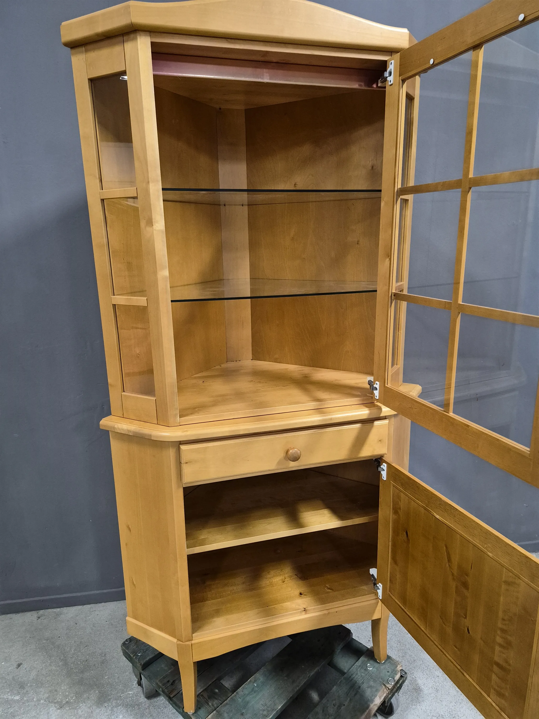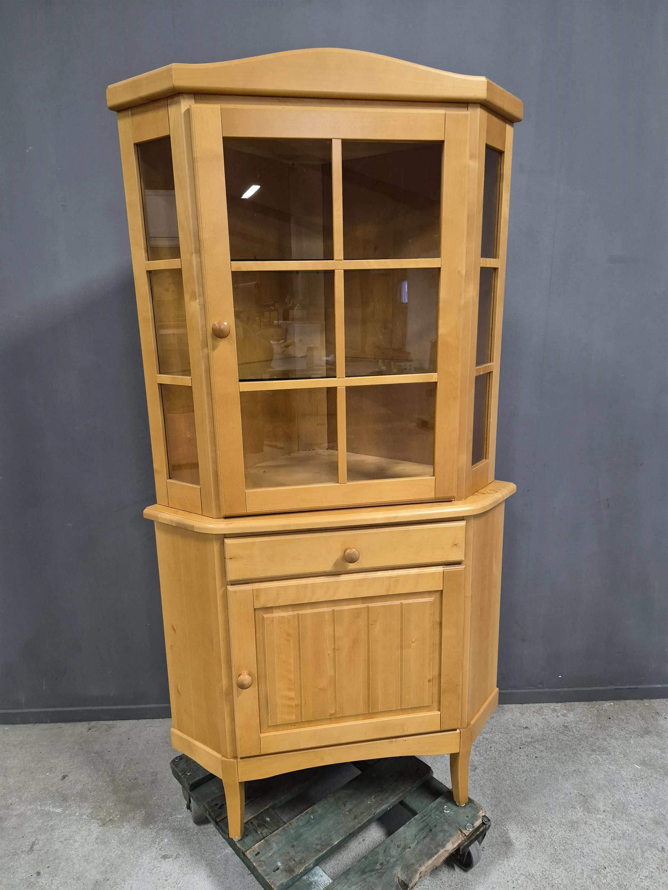 19214. Hörnskåp, med vitrinöverdel, björk, höjd 191 cm, bredd 99 cm, djup 64 cm