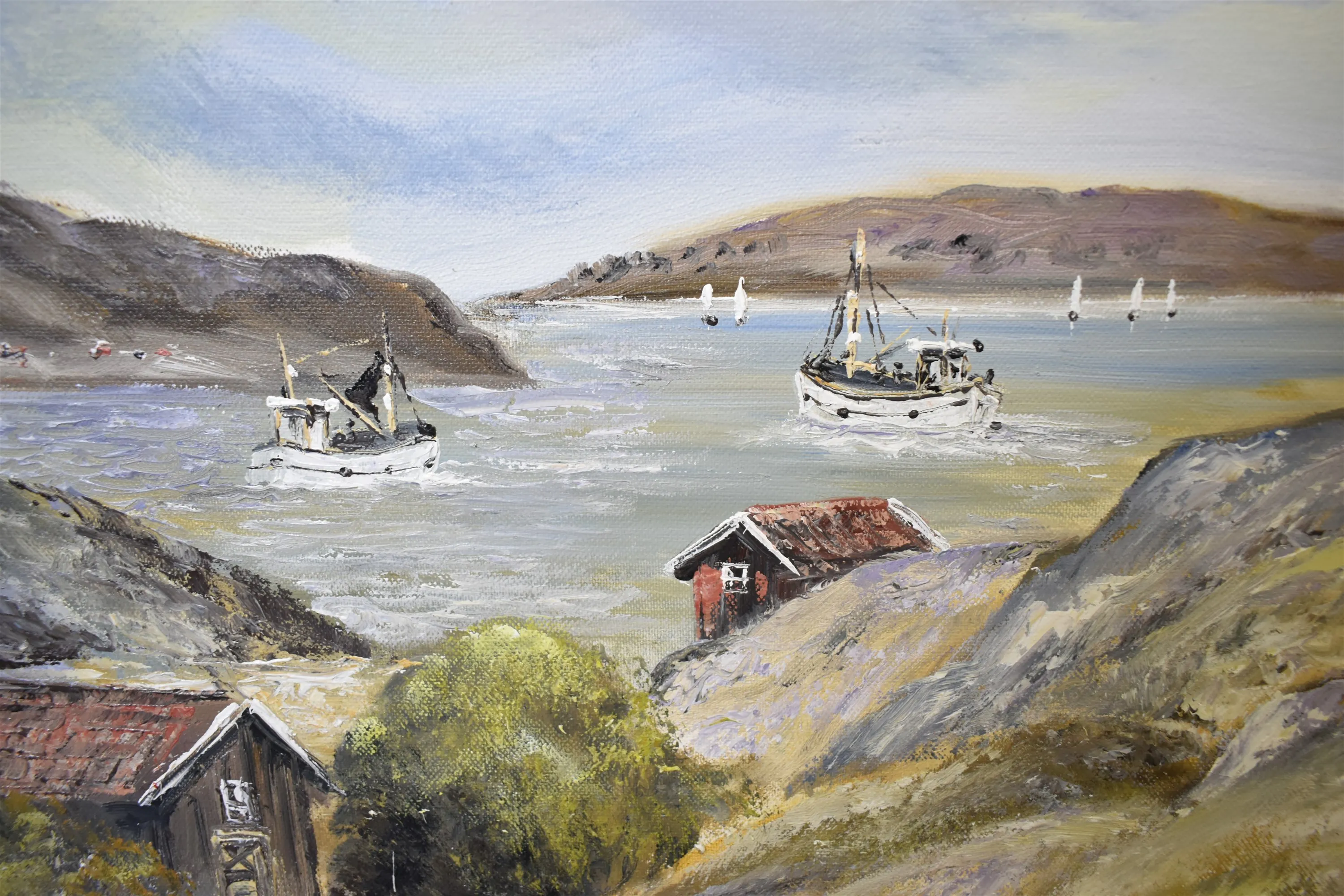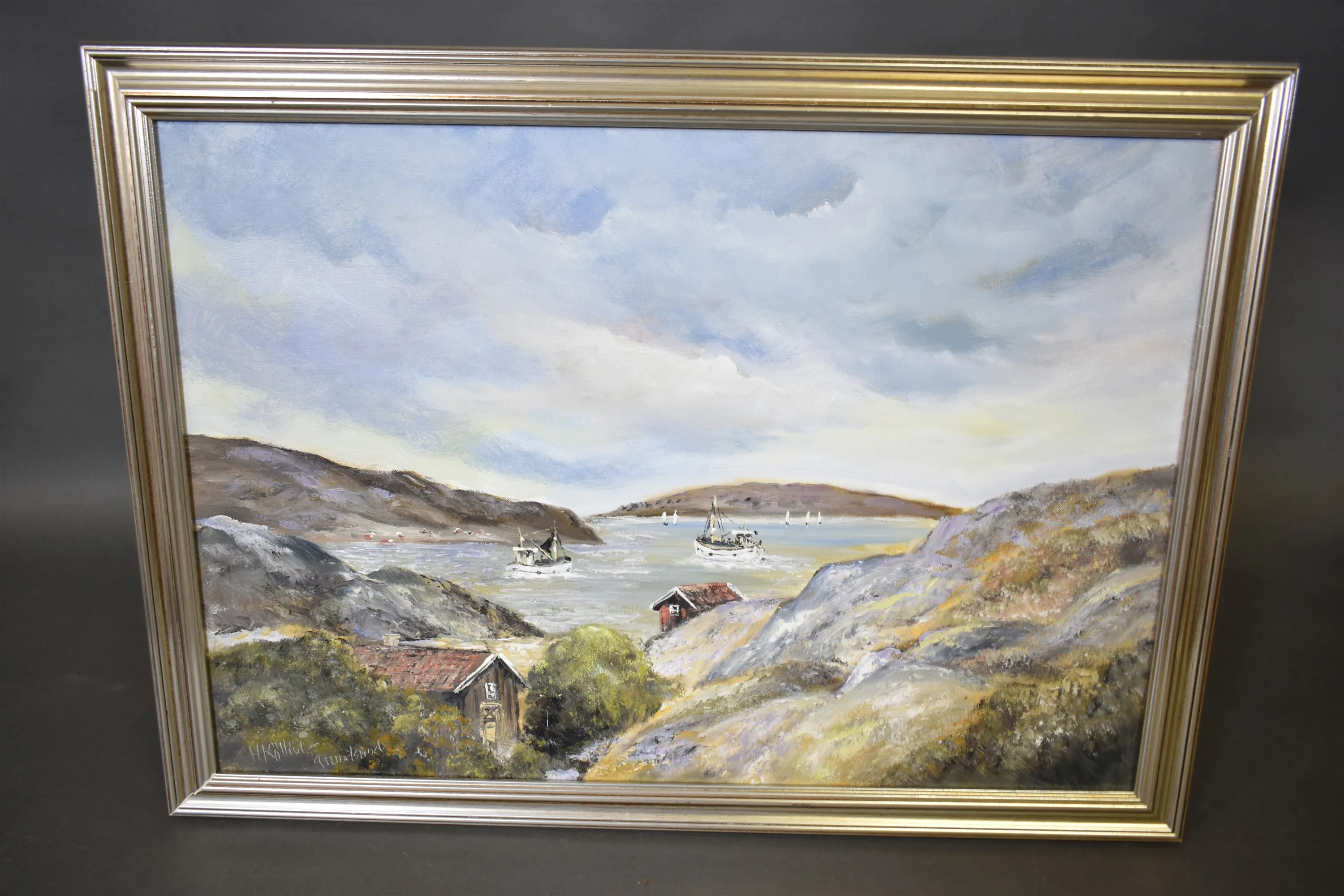 15551. H.Köllisch olja på duk, "infarten till Grundsund", mått 73 x 53 cm