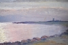 5387. H.Nord olja på duk, "Kustvy med väderkvarn", mått 61 x 54 cm