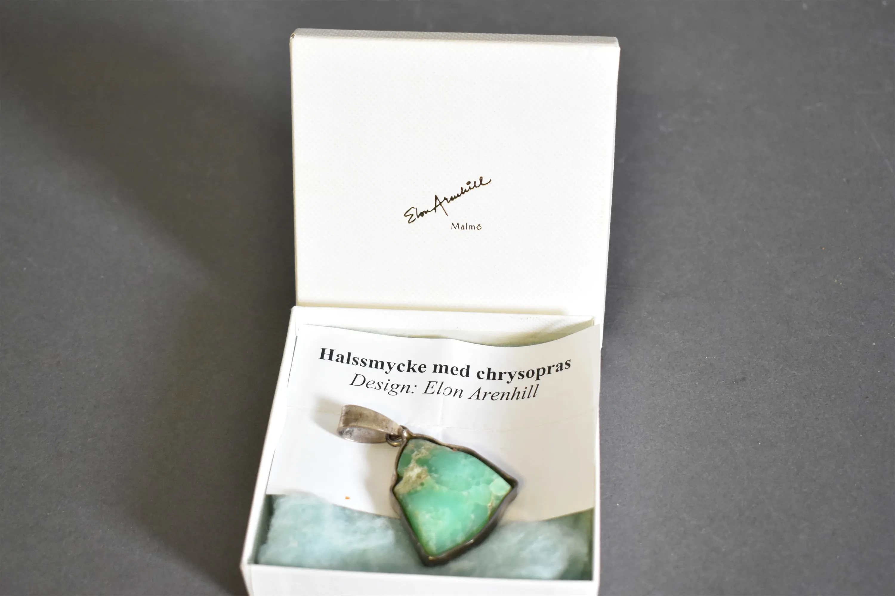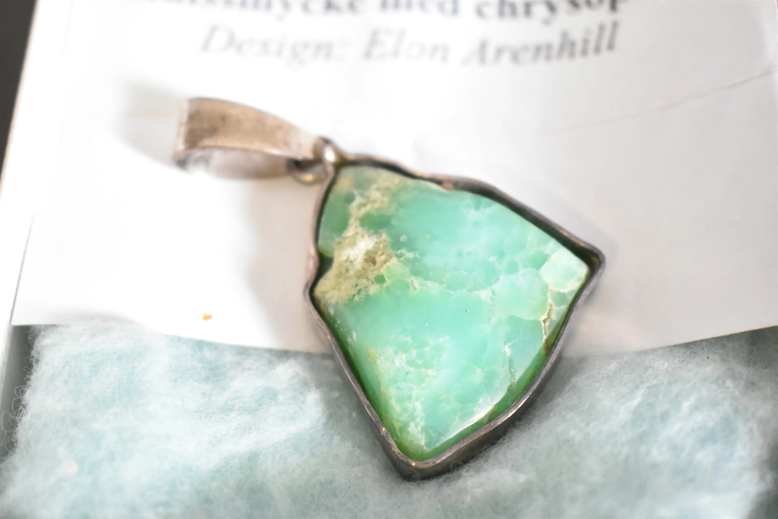 14751. Halssmycke med chrysopras Elon Arenhill, silver, höjd 6 cm, bredaste mått 3,5 cm