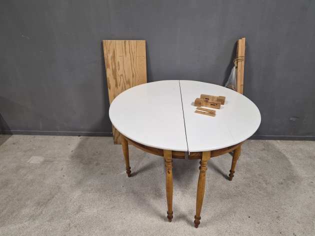 19088. Halvmånebord, 1 par med extraskiva, höjd 77 cm, diameter 111 cm, iläggsskiva bredd 40 cm
