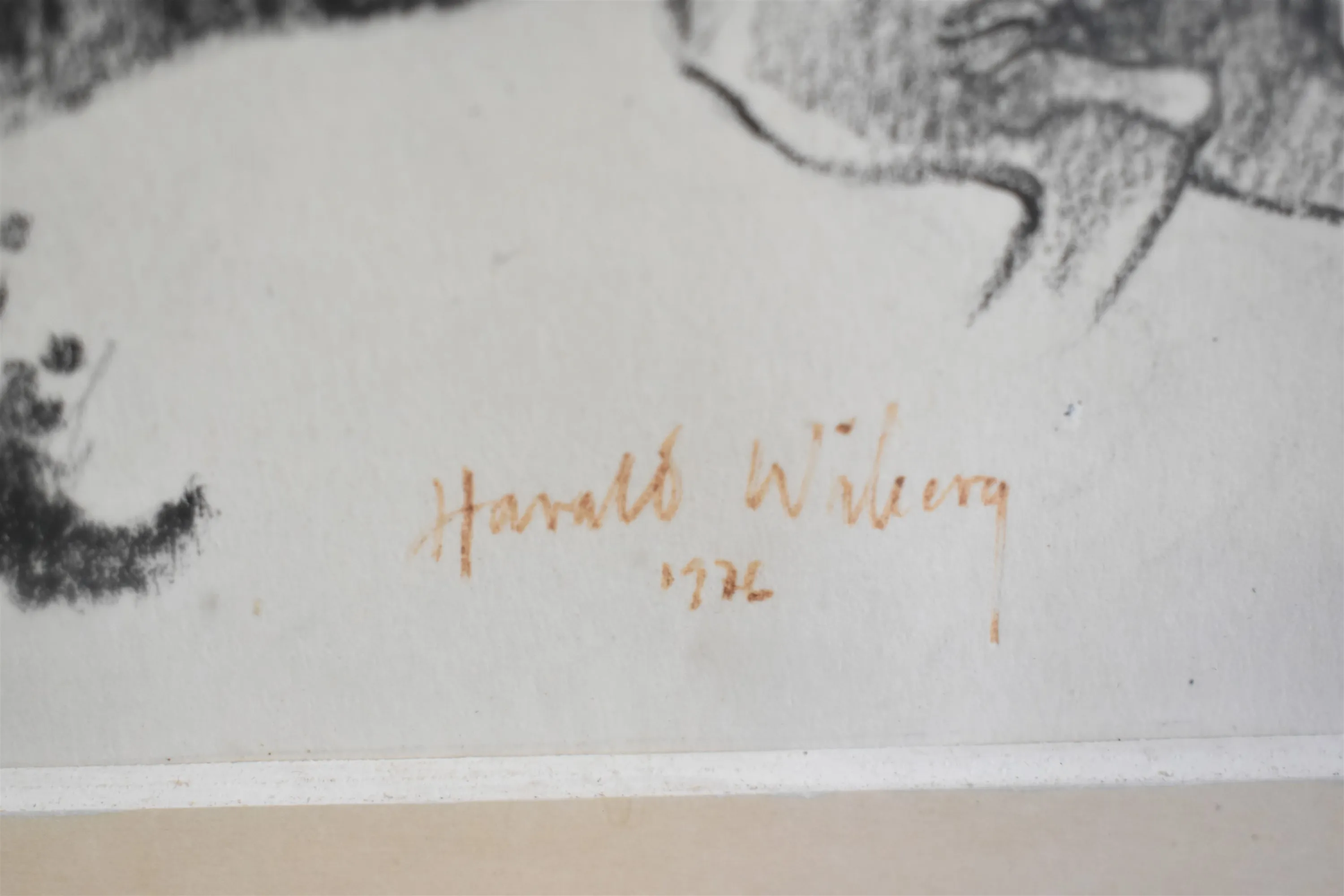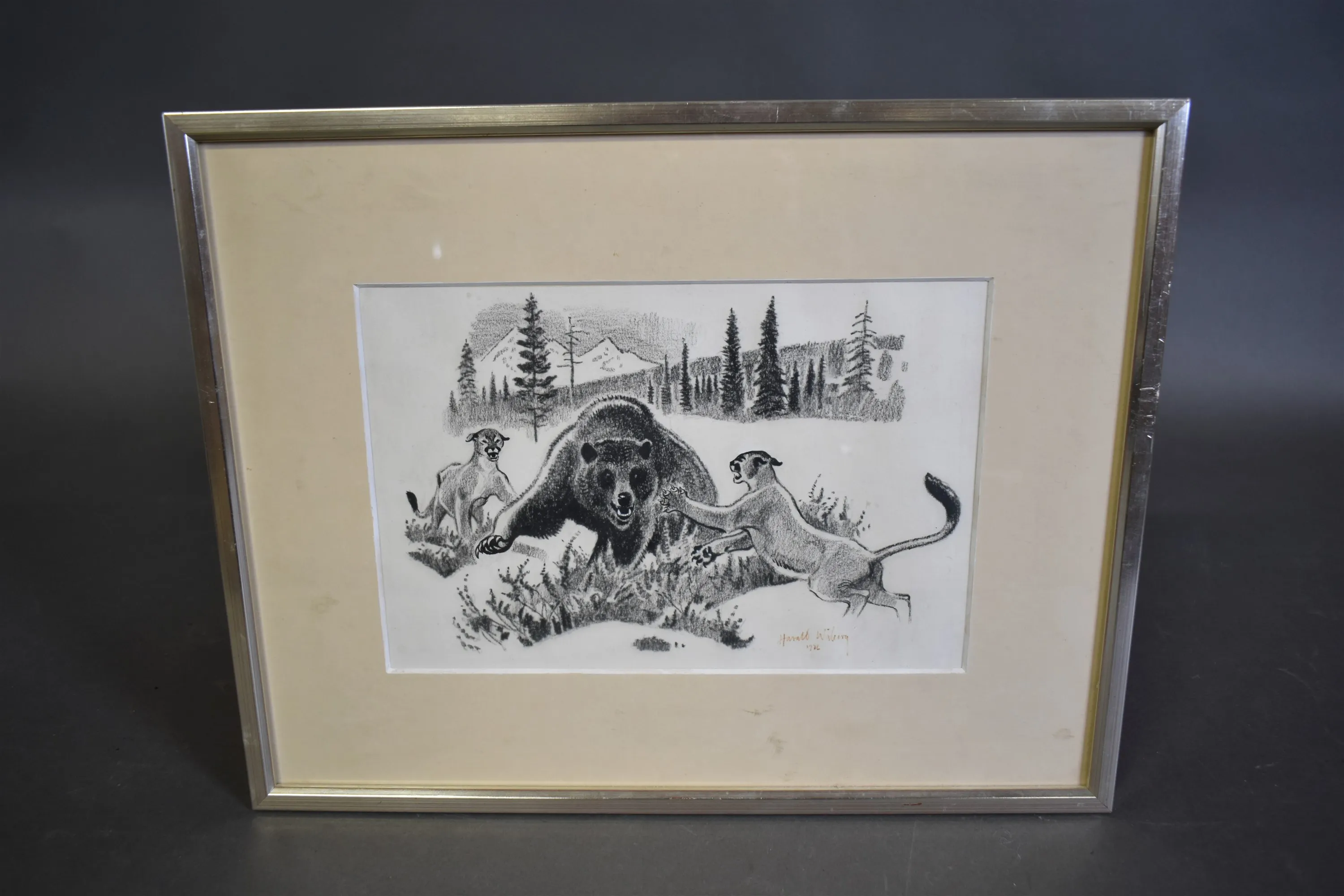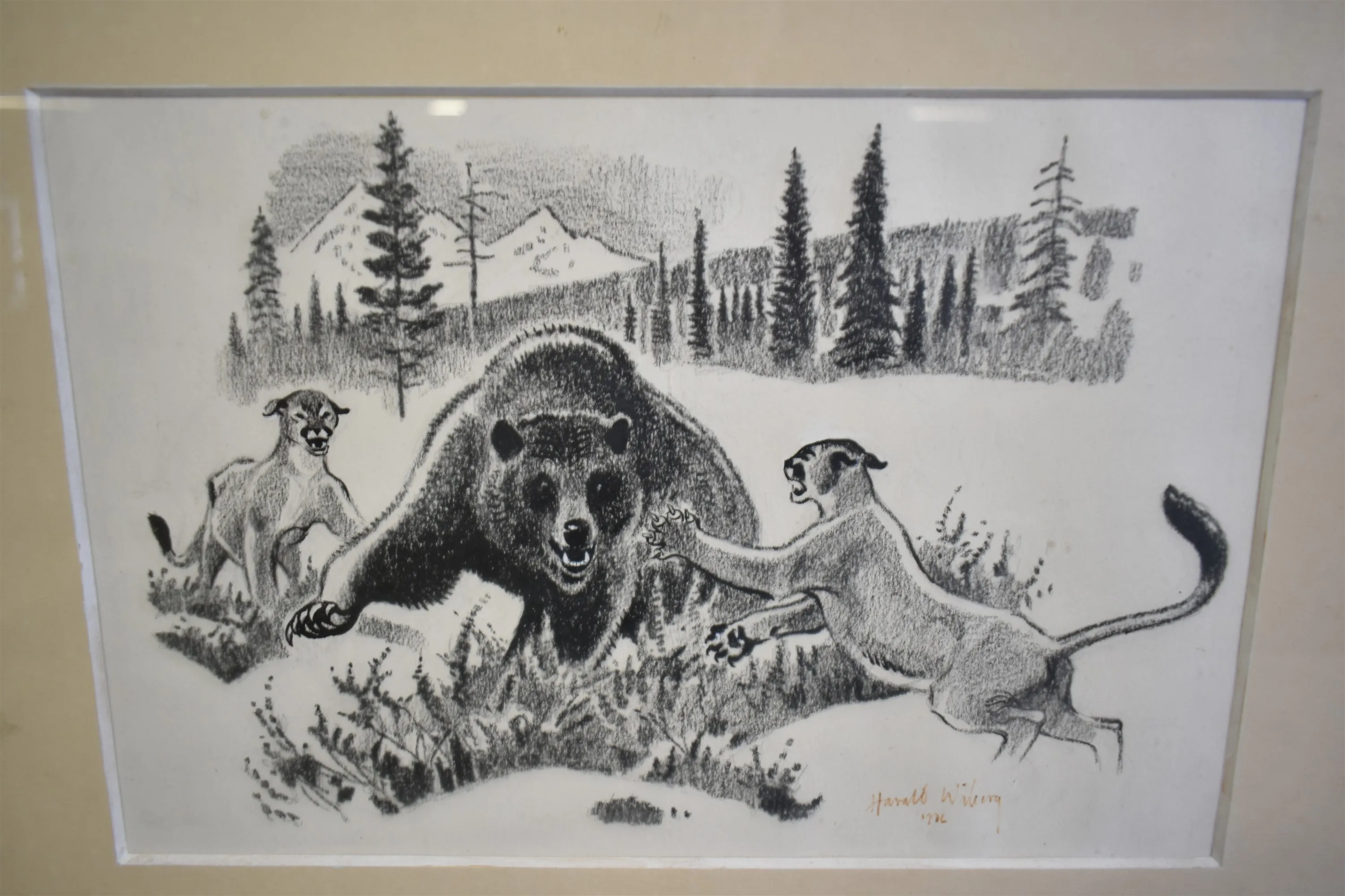 16662. Harald Wiberg blandteknik, björn och pumor, yttermått 46x36 cm