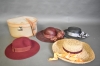 7666. Hattlåda med damhattar 4 st, högst höjd 20 cm