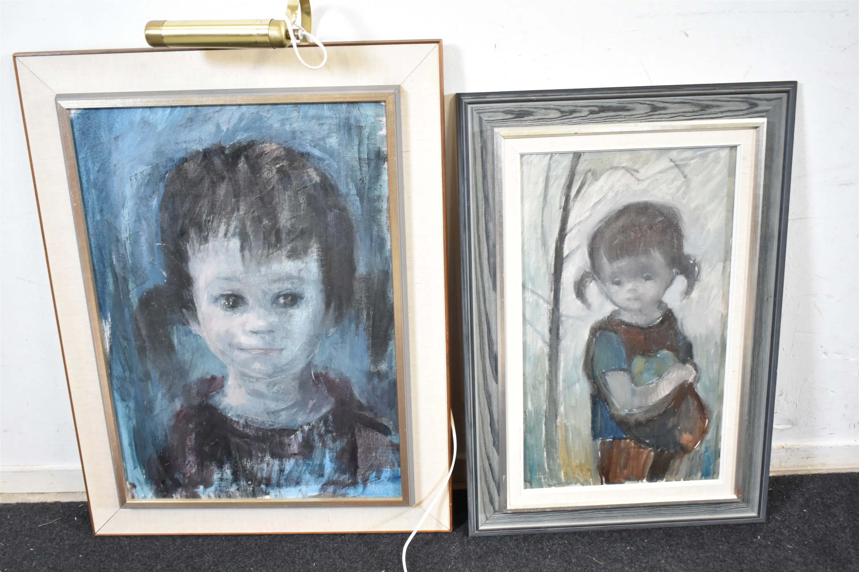 12640. Hildegard Falk, olja på duk 2 st "Barnmotiv", största mått 61 x 80 cm
