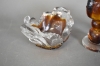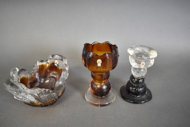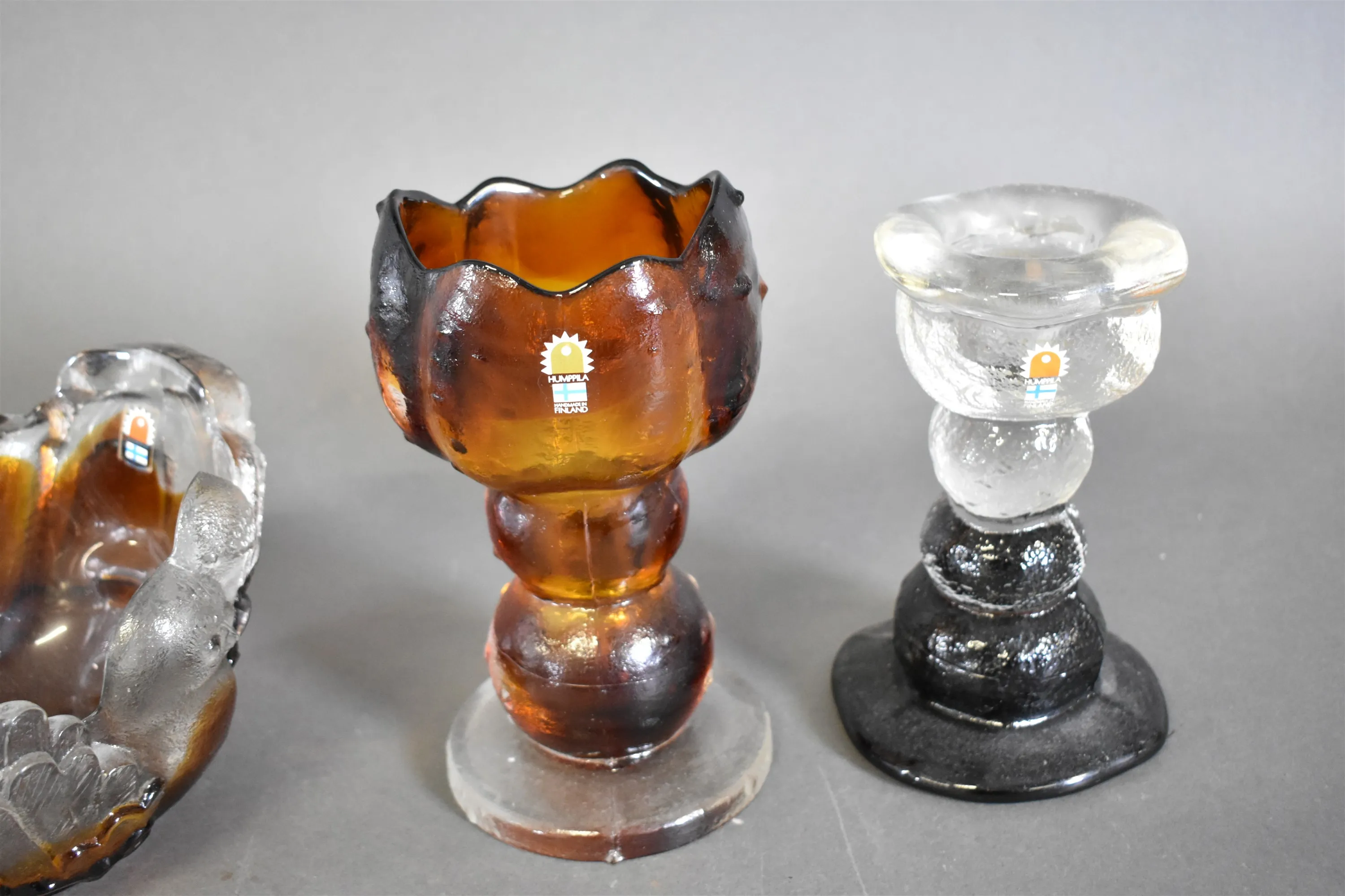 16439. Humppila 3 delar; skål och ljusstakar, glas, högsta höjd 20 cm