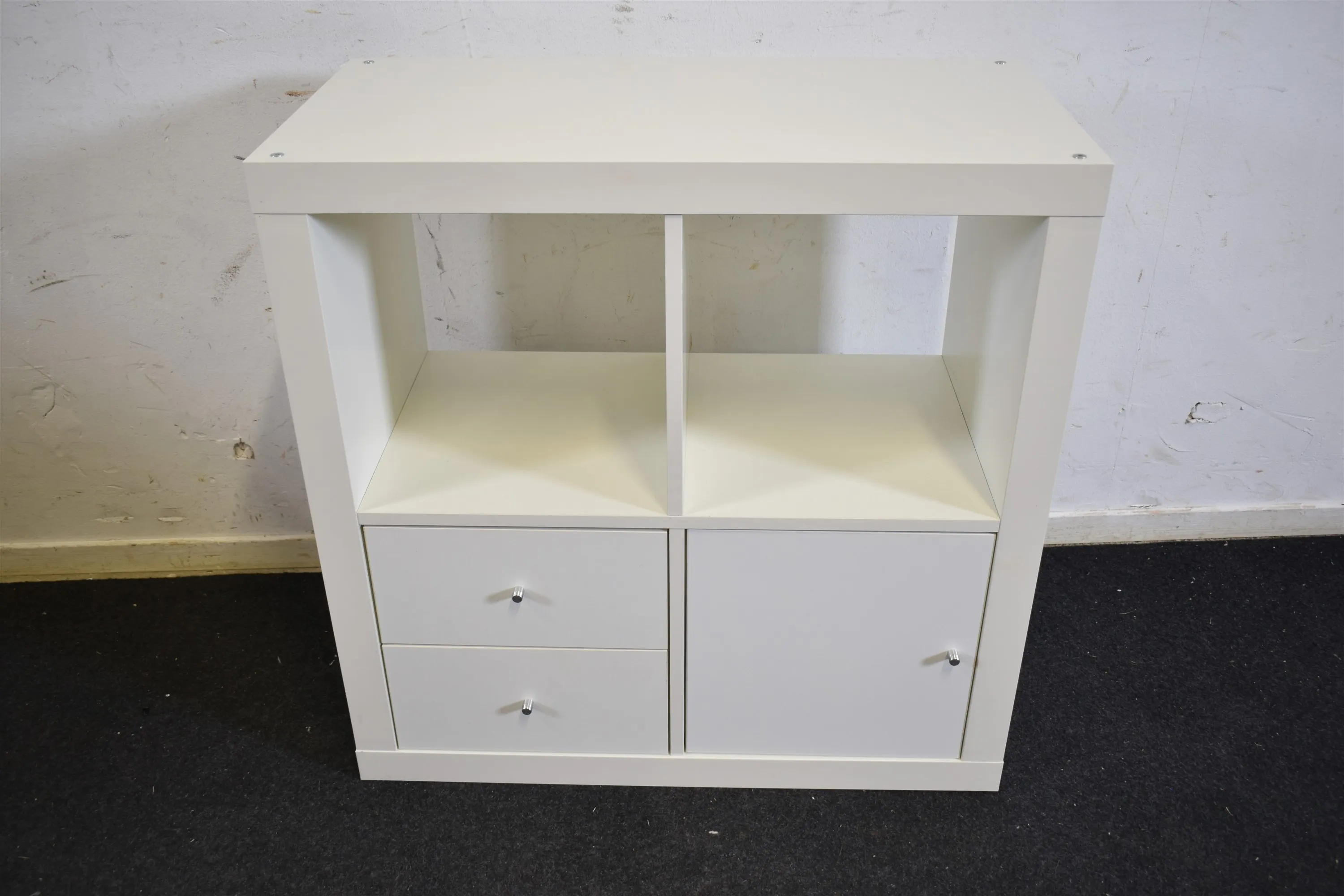 15263. Hylla med lådor & skåp, höjd 80 cm, bredd 79 cm, djup 39 cm