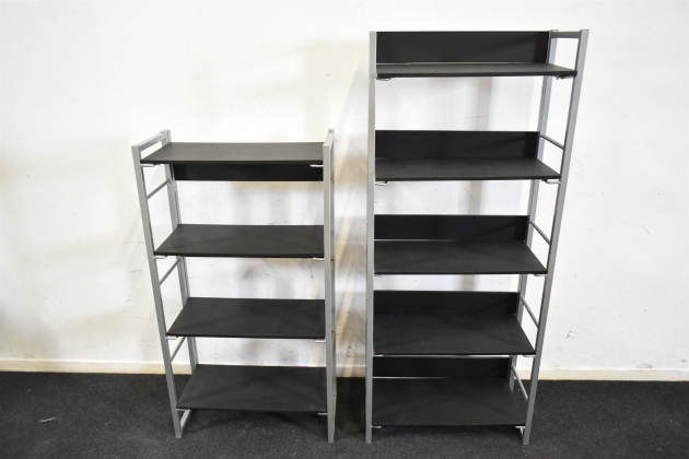 14705. Hyllor 2 st, mått på större hylla höjd 146 cm, bredd 61 cm, djup 29 cm