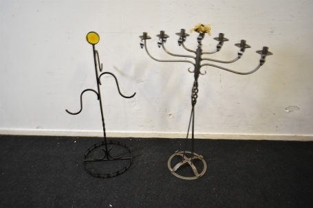 7774. Hållare & golvljusstake smide högsta 93 cm