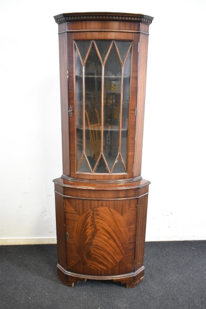 15393. Hörnskåp med vitrin mahogny, höjd 184 cm, bredd 67 cm, djup 48 cm