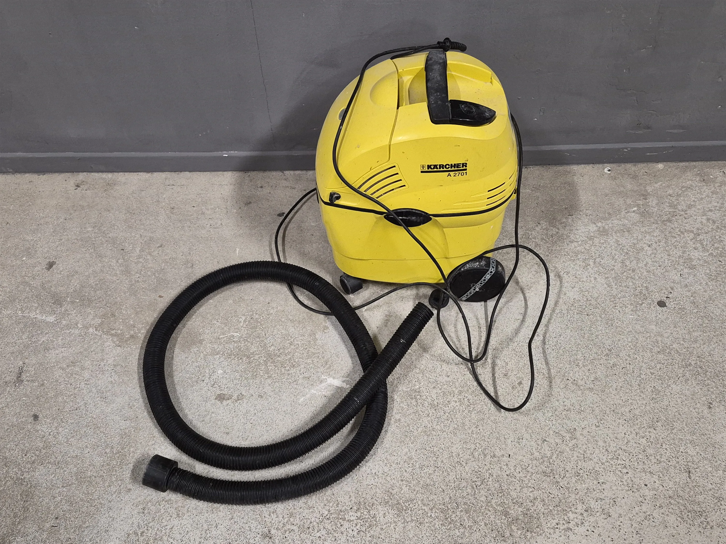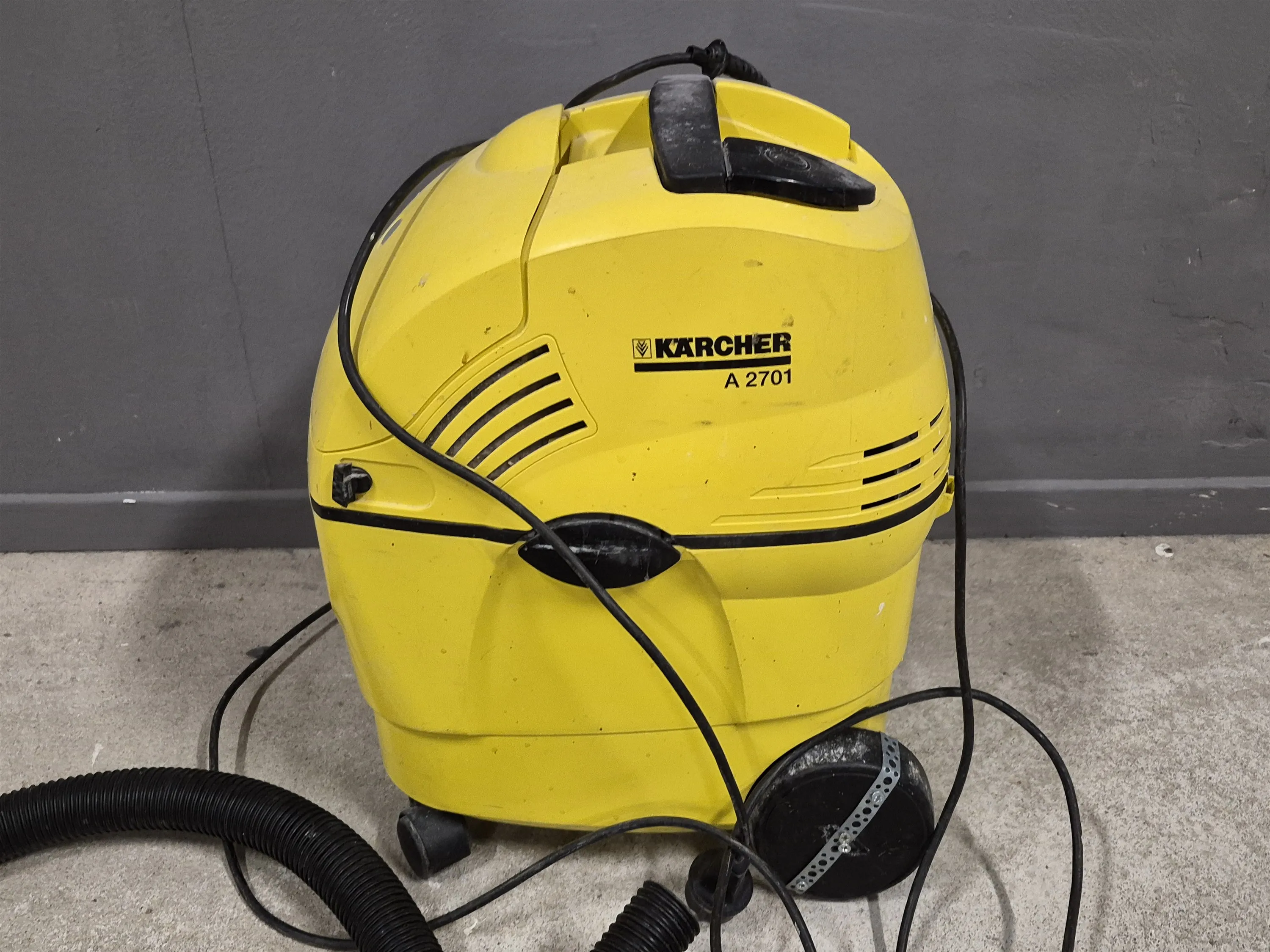 17901. Industridammsugare Kärcher med slang, ett hjul lagat höjd 52 cm