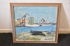 635. Ingvar Carlsson olja på duk " åhus hamn" mått 58 cm x 54 cm