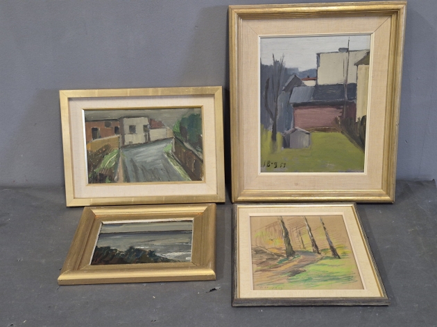 19682. Ivan Brogren 4 st olja på duk, teckning största mått 42 x 50 cm