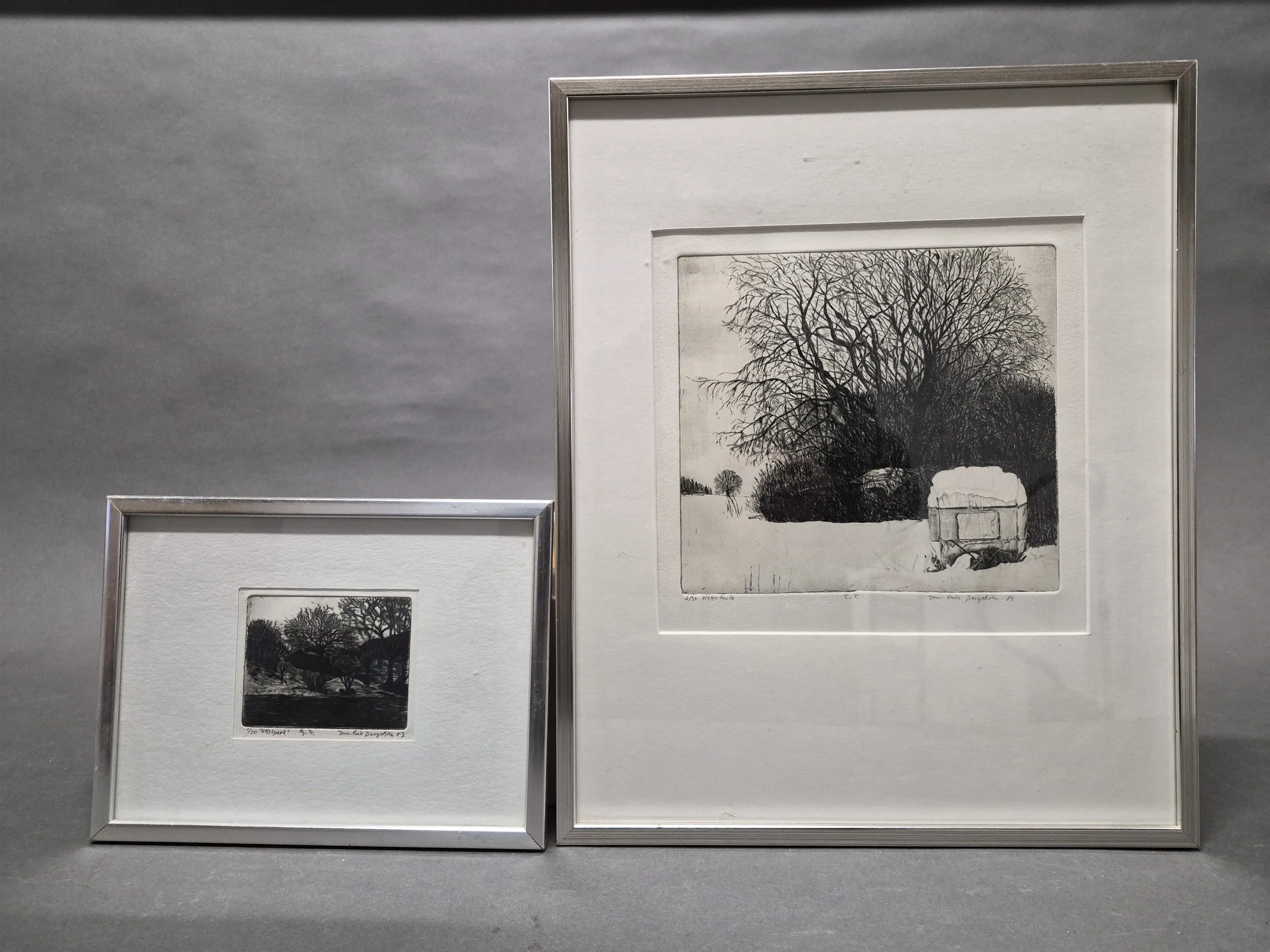 19206. Jan Erik Bergström etsningar 2 st mått 42 x 50 cm